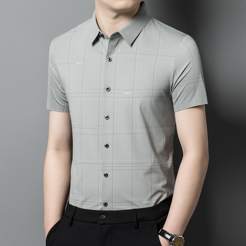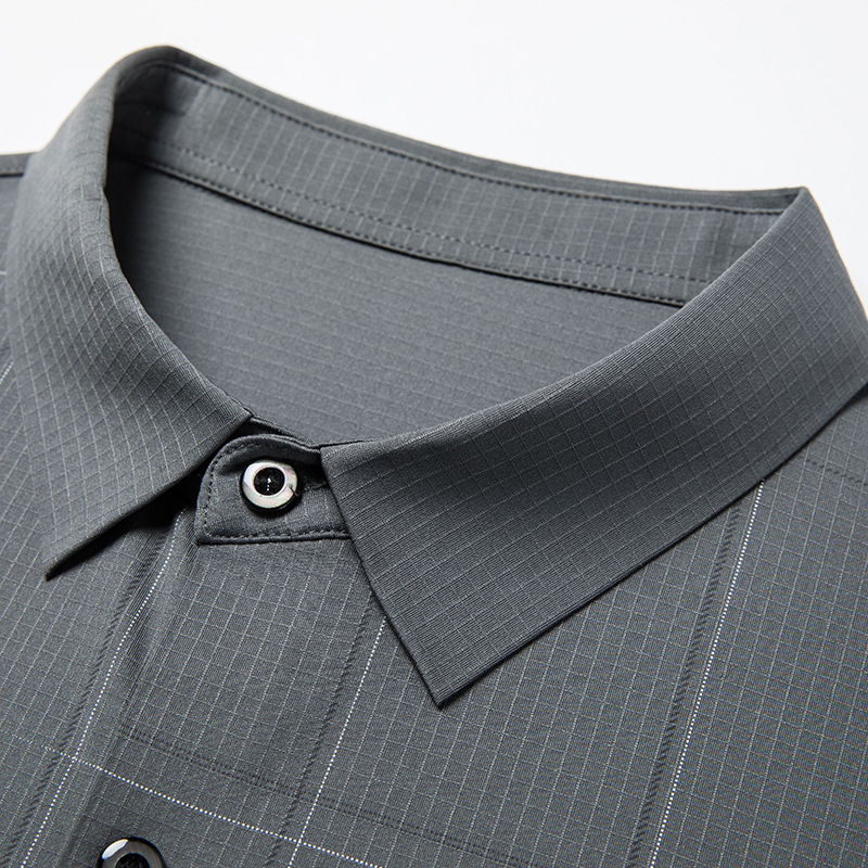 2024 여름 새로운 젊은 및 중년 남성 옷깃 티셔츠 간단한 격자 무늬 가벼운 성숙한 남성 셔츠