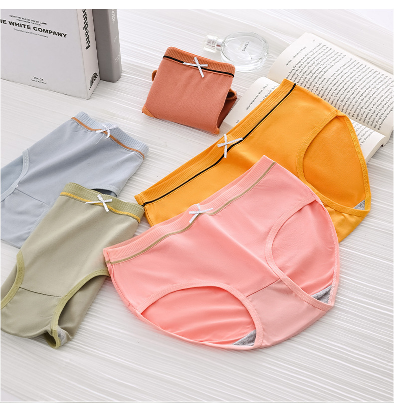 여자 속옷 여자 더블 레이어 내부 크로트 달콤한 속옷 중간 허리 통기성 브리프 여자 반바지 학생 바지스토어 가기