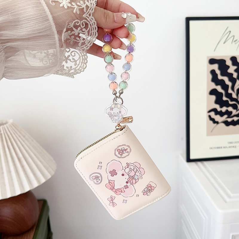 Ins 스타일 일본과 한국 스타일 소녀의 심장 경량 카드 가방 지갑 원피스 귀여운 만화 교수형 장식 안티 손실 도난 브러쉬 동전 지갑