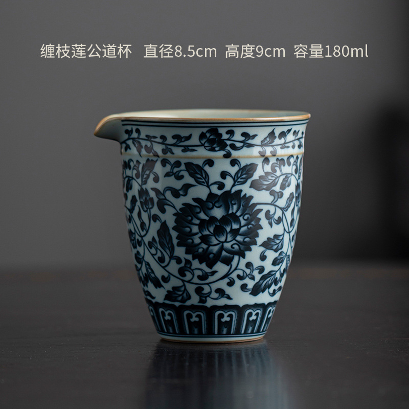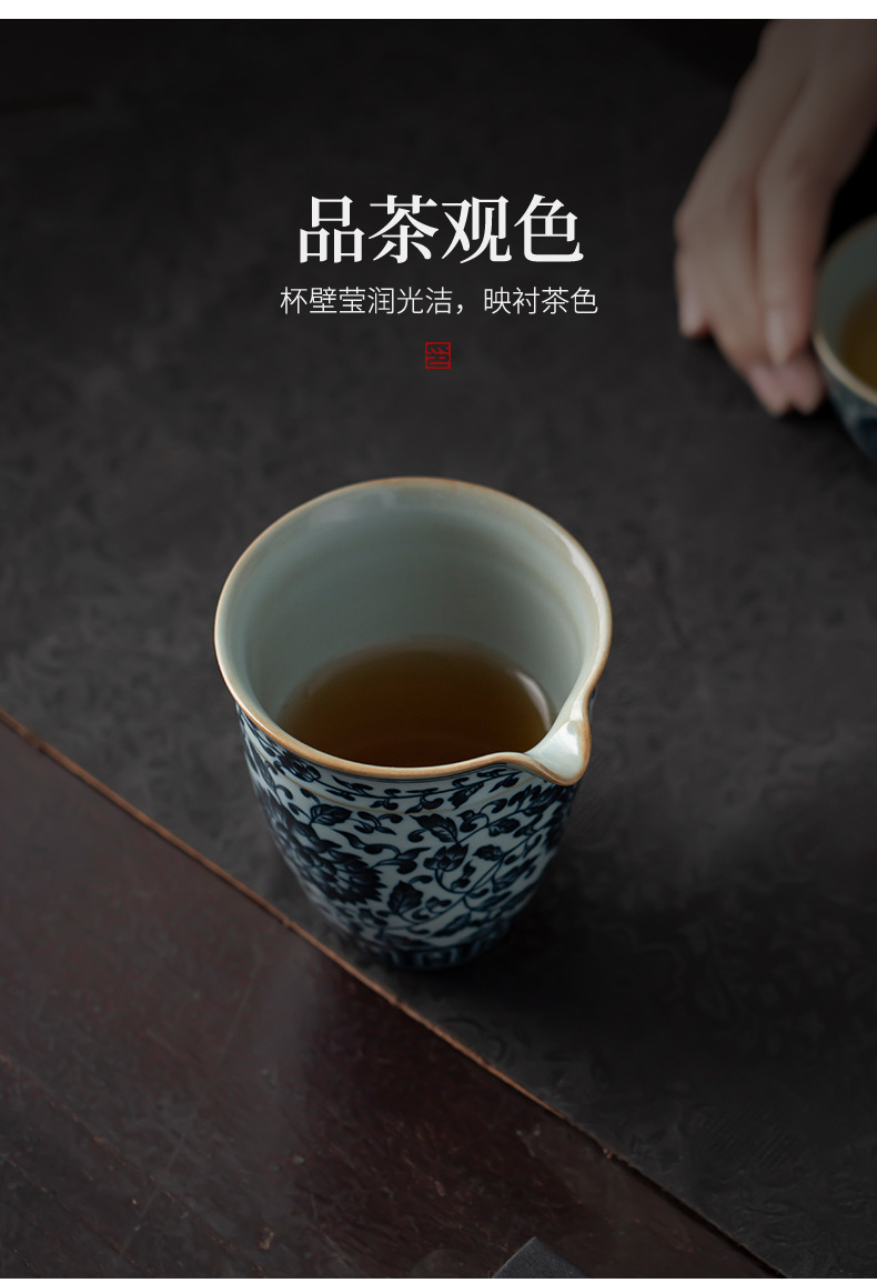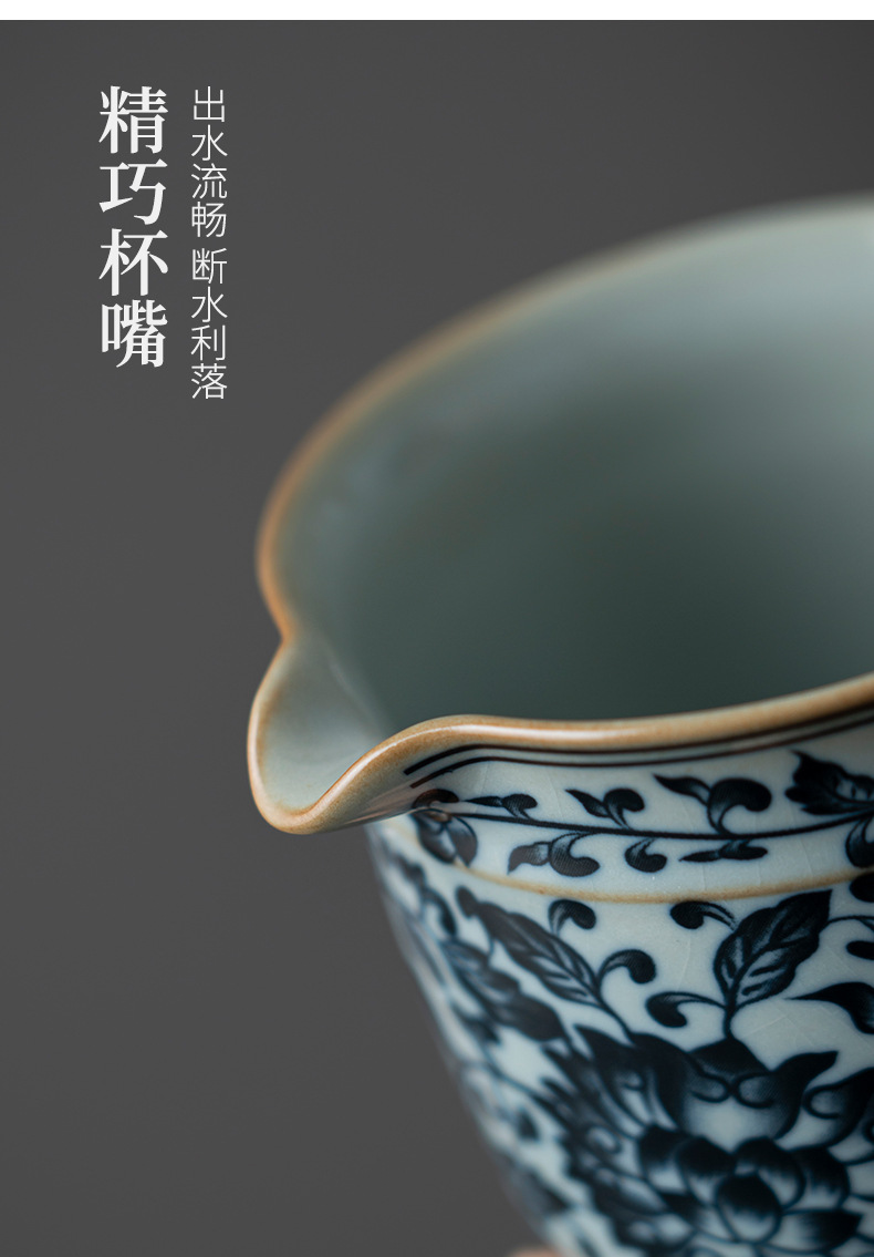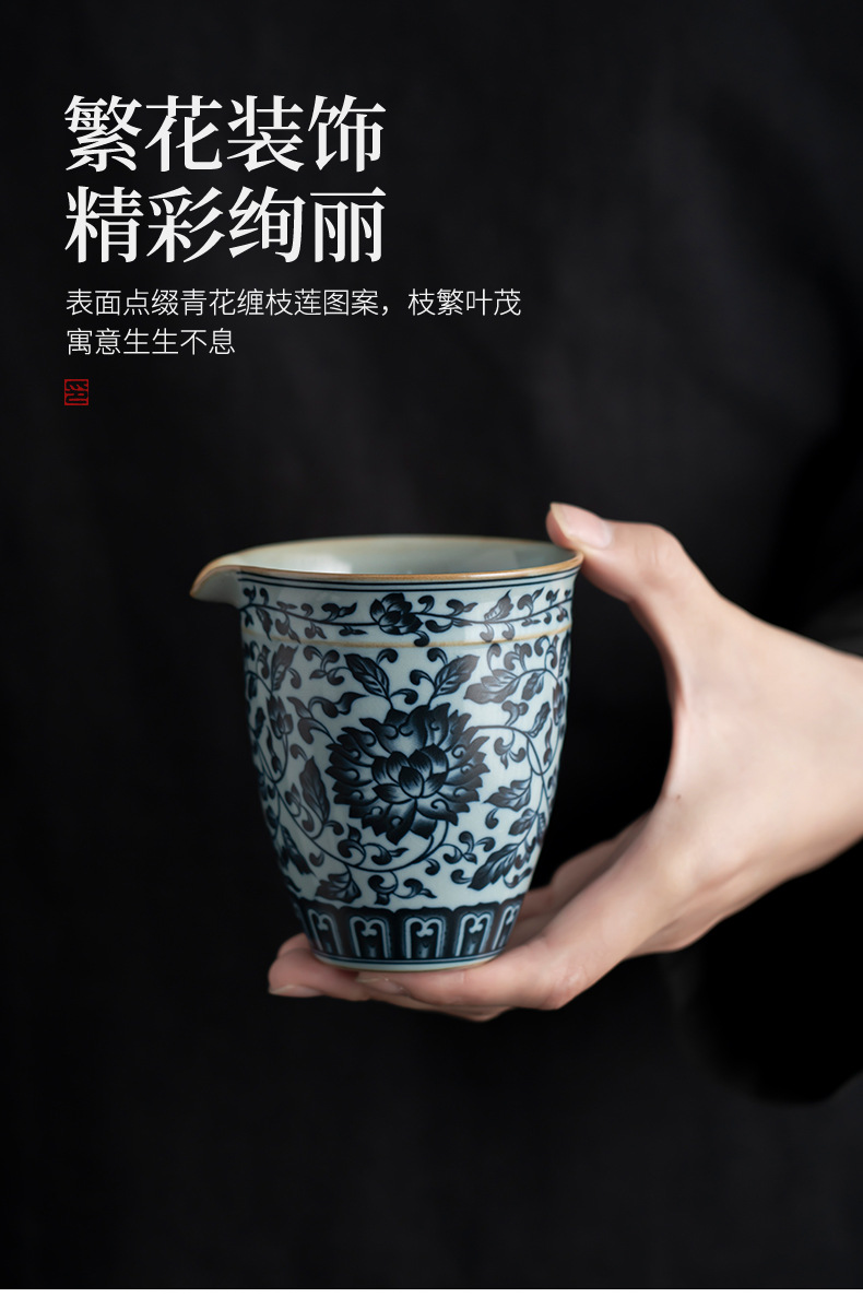 Tianqing Ru Kiln 파란색과 흰색 포장 Zhi Lian Gong Dao Cup 세라믹 서브 티 워어 공개 컵 쿵푸 티 세트 오픈 필름 Ru 도자기 차 바다
