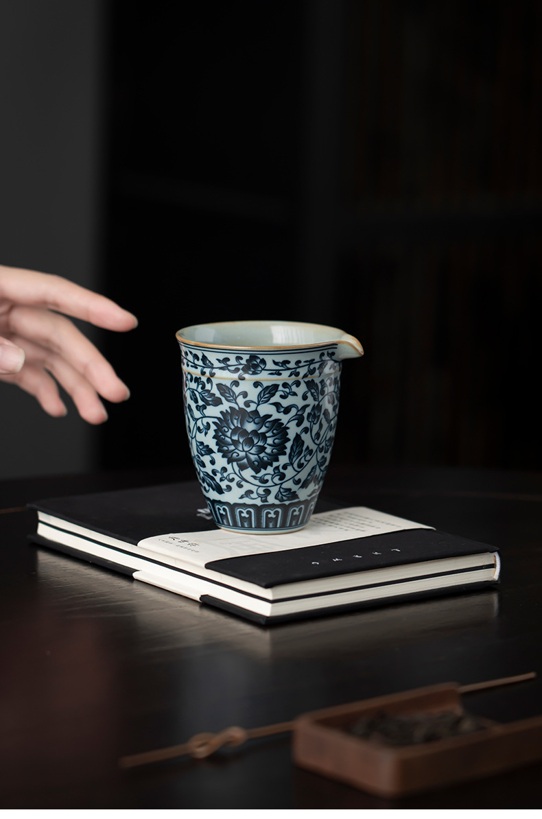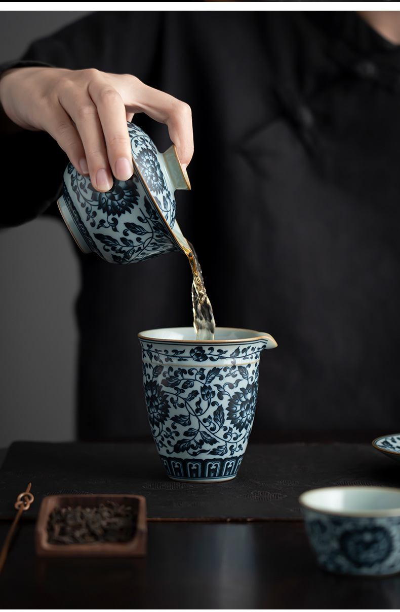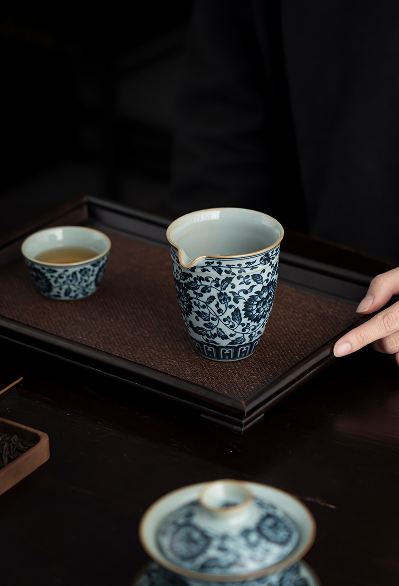 Tianqing Ru Kiln 파란색과 흰색 포장 Zhi Lian Gong Dao Cup 세라믹 서브 티 워어 공개 컵 쿵푸 티 세트 오픈 필름 Ru 도자기 차 바다
