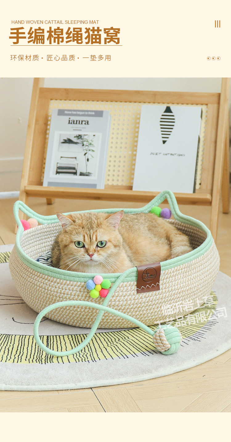 등나무 고양이 둥지, 고양이 스크래치 보드, 올인원 셀프 허이빙 볼, 사계절 사용 가능한 만능 손으로 짠 둥지, 세탁 가능한 고양이 매트, 수면 둥지스토어 가기