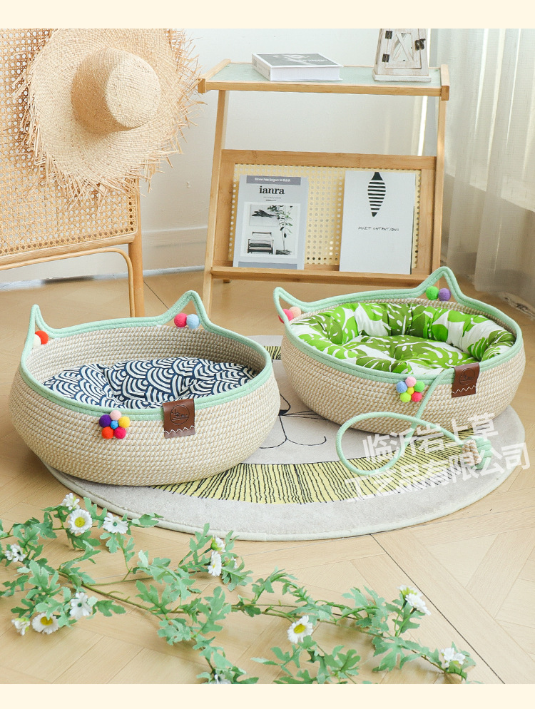 등나무 고양이 둥지, 고양이 스크래치 보드, 올인원 셀프 허이빙 볼, 사계절 사용 가능한 만능 손으로 짠 둥지, 세탁 가능한 고양이 매트, 수면 둥지