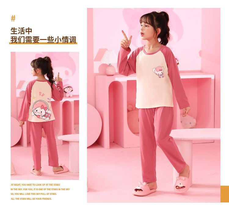 봄과 가을 잠옷 어린이 소녀 면 귀여운 딸기 곰 어린 소녀 아기 중 큰 어린이 집 옷 세트