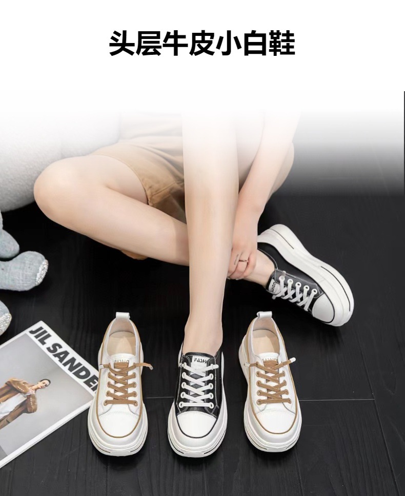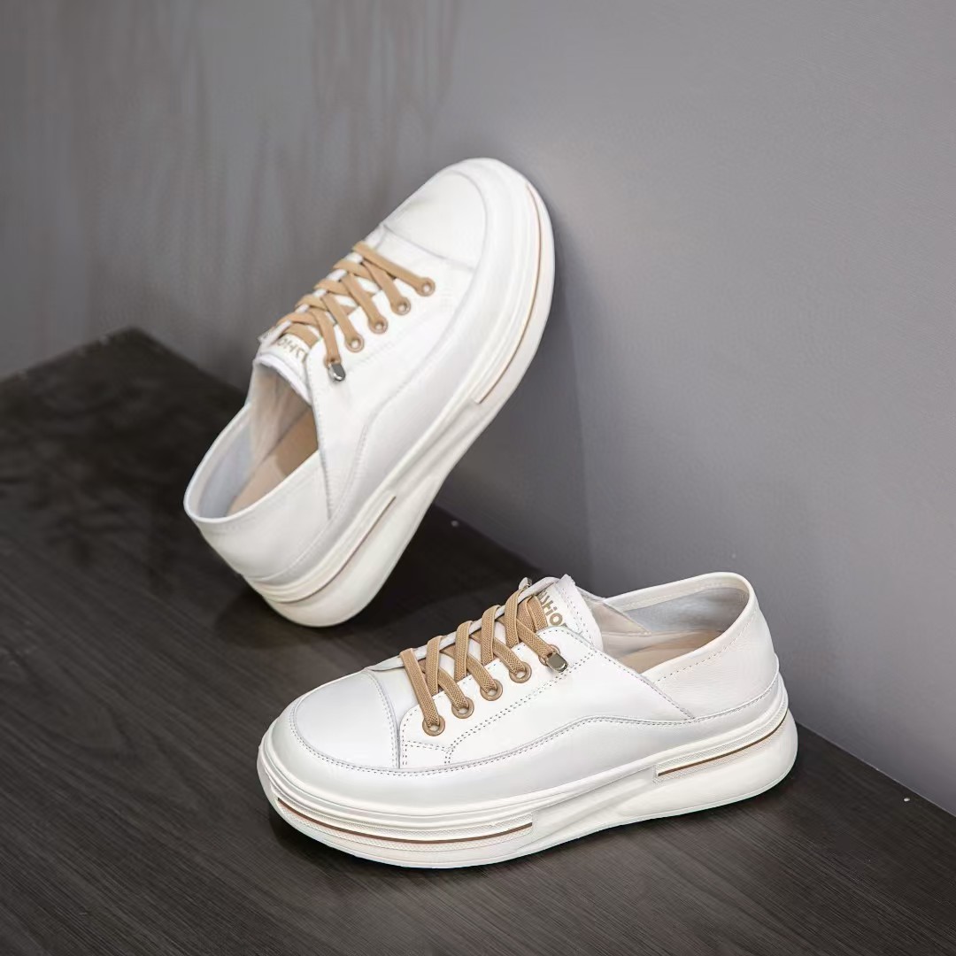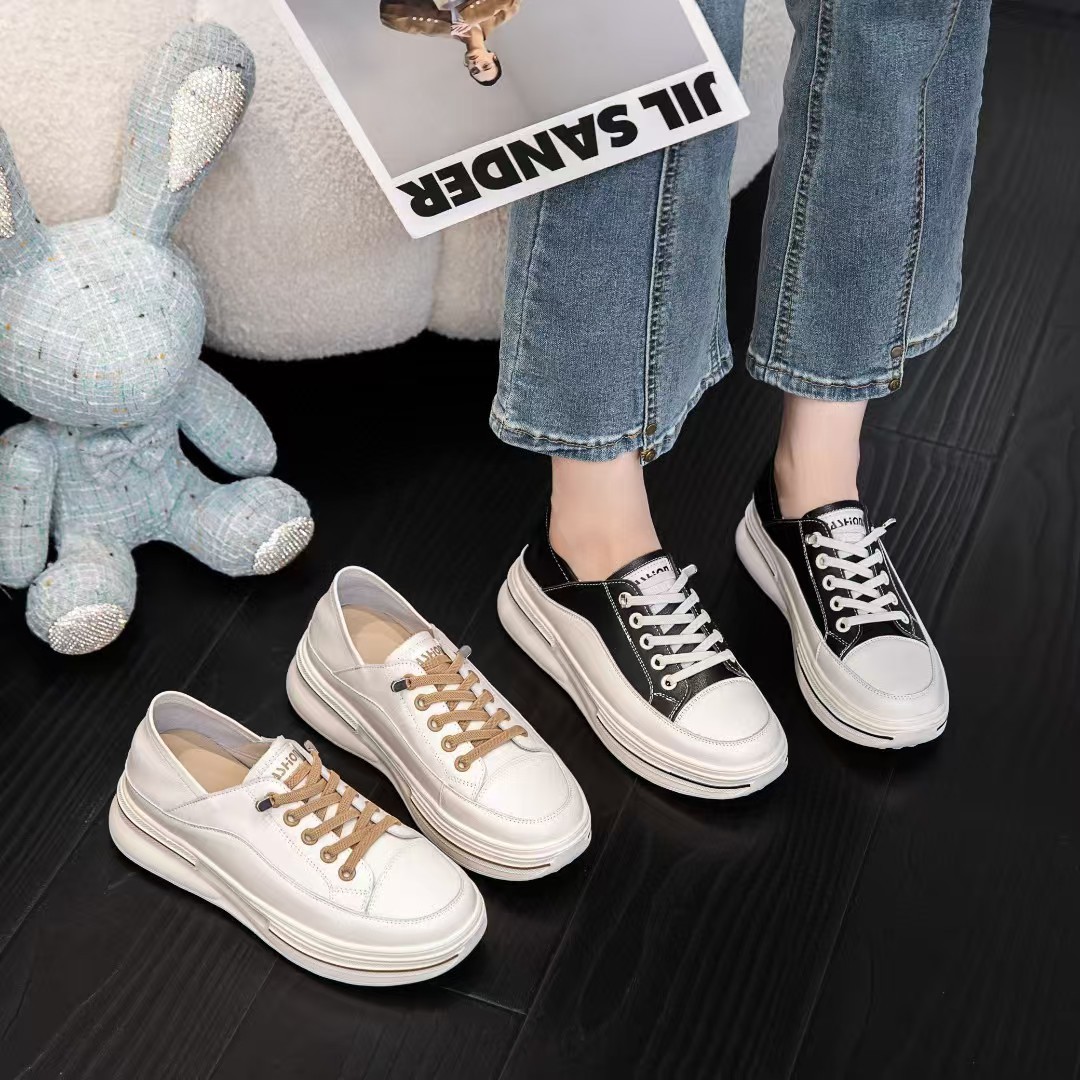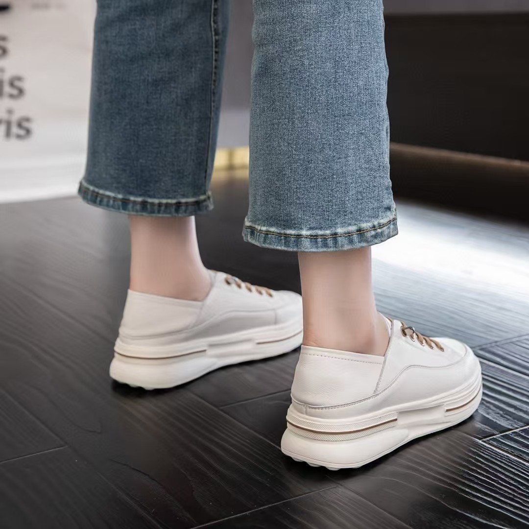 여성을위한 첫 번째 레이어 소 가죽 흰색 신발 2025 가을 새로운 경량 스포츠 신발 한국어 버전 다목적 두꺼운 밑창 캐주얼 신발