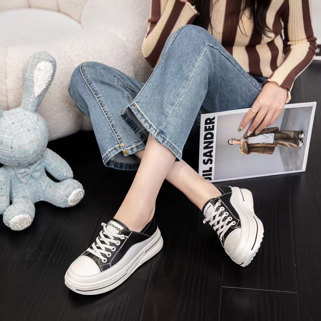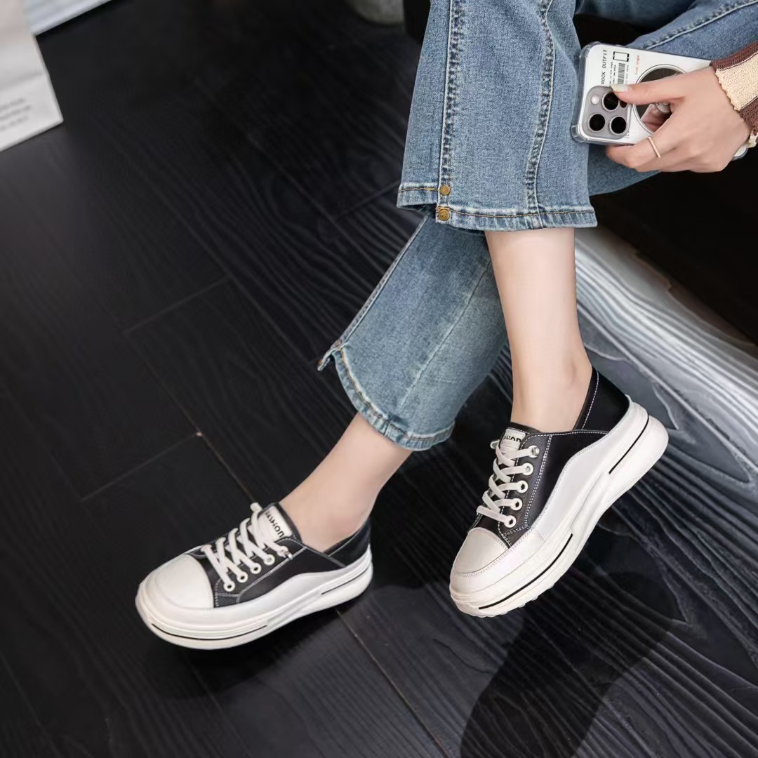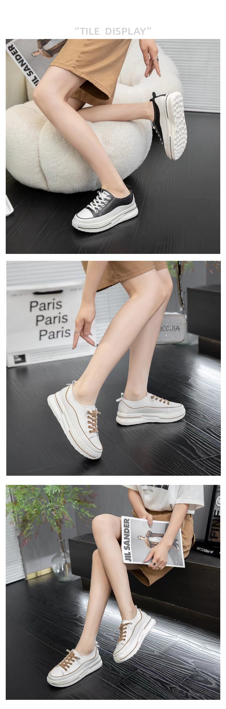여성을위한 첫 번째 레이어 소 가죽 흰색 신발 2025 가을 새로운 경량 스포츠 신발 한국어 버전 다목적 두꺼운 밑창 캐주얼 신발