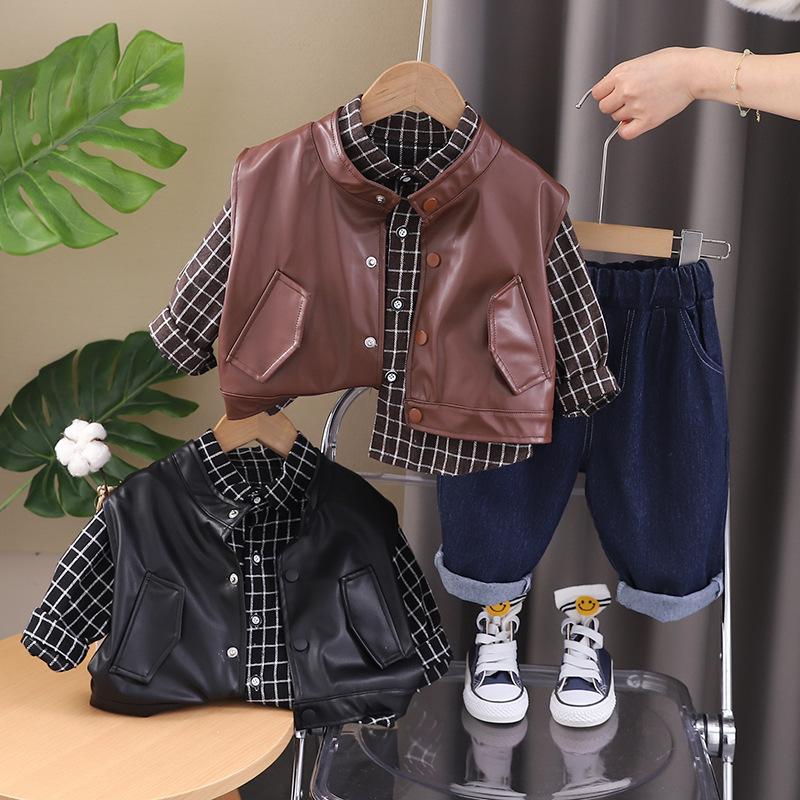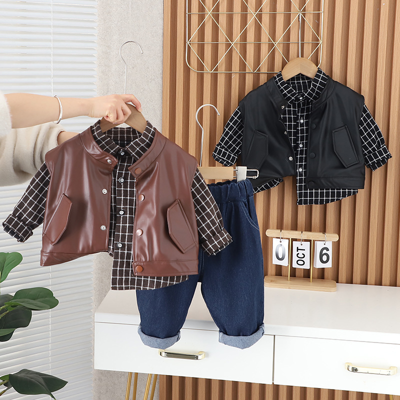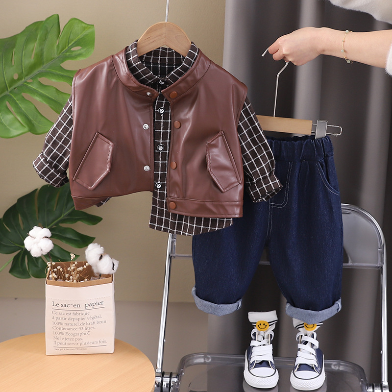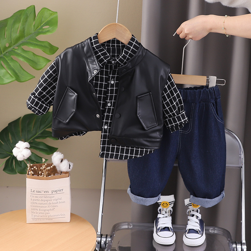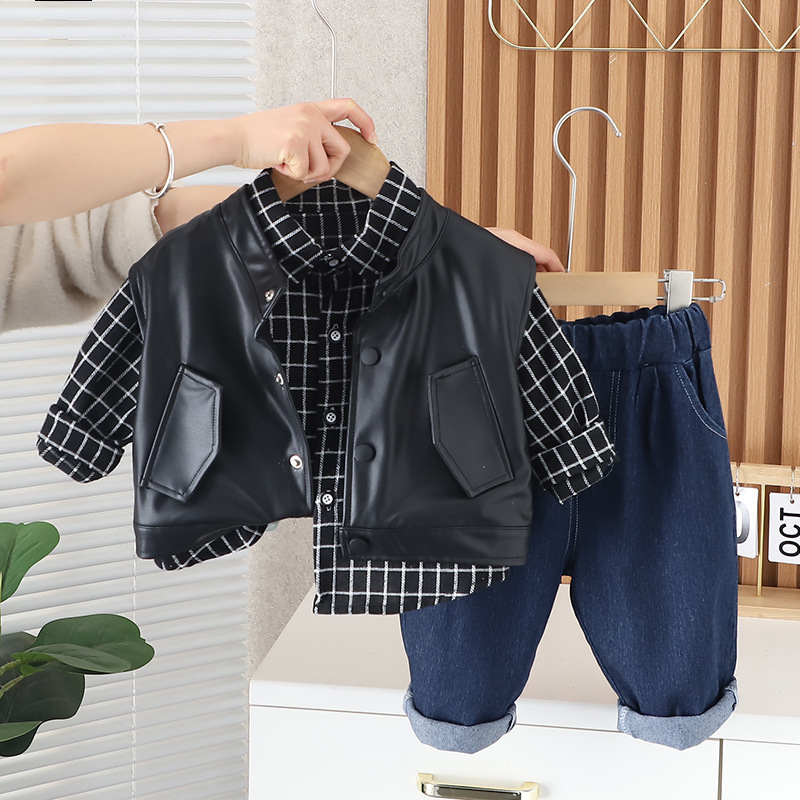 소년의 가을 3 피스 세트 2024 새로운 베이비 캐주얼 아동복 아동복 외국식 봄과 가을 세트 조수스토어 가기