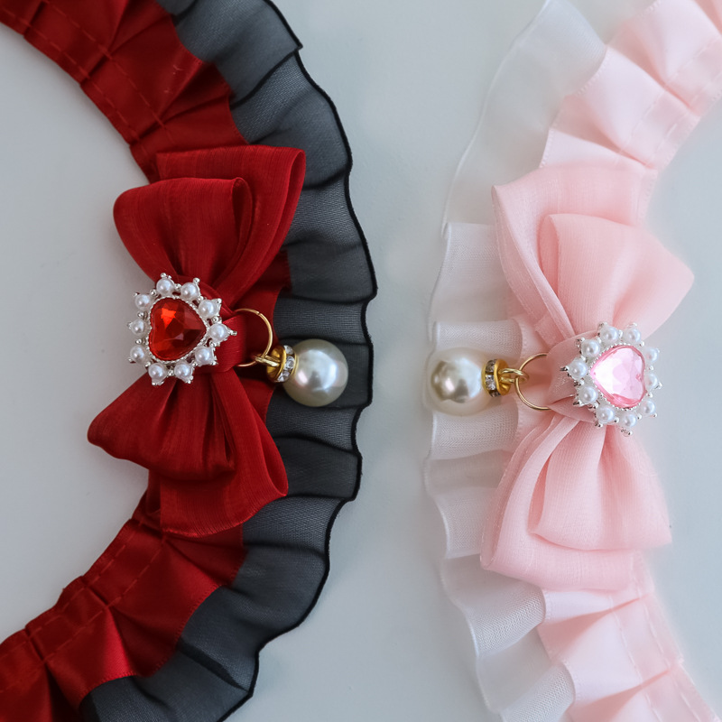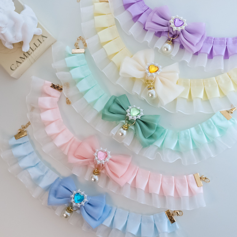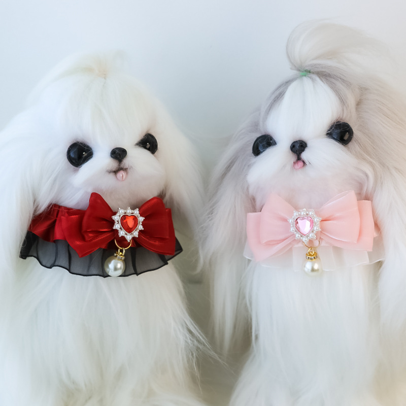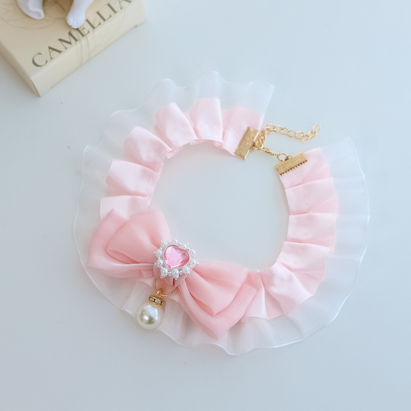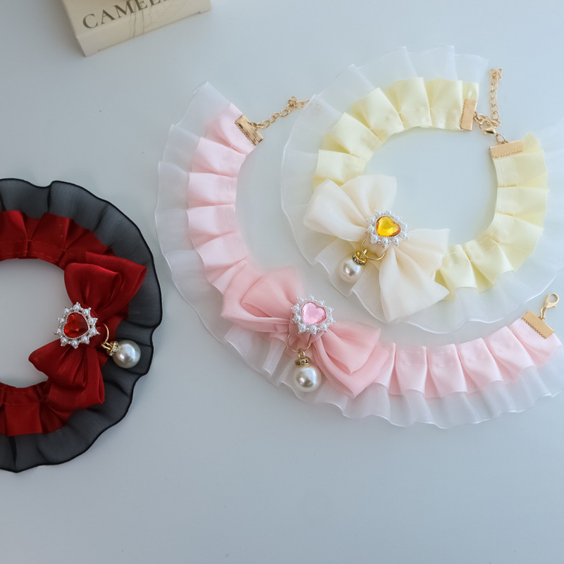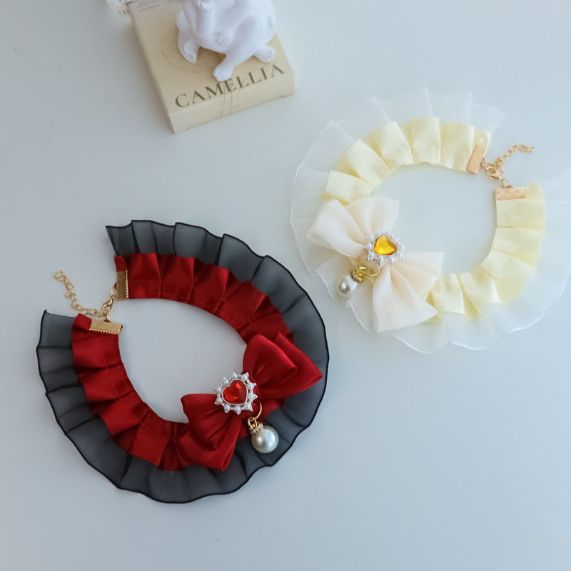 애완 동물 칼라 새끼 고양이 타액 수건 보석 레이스 깨진 꽃 활 복고풍 사랑 진주 하이 엔드 느낌
