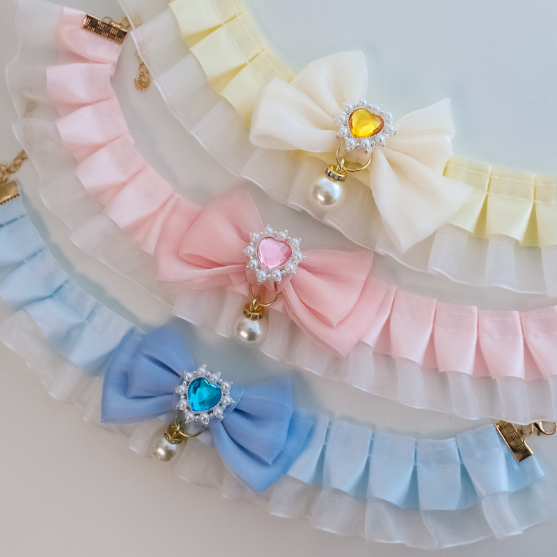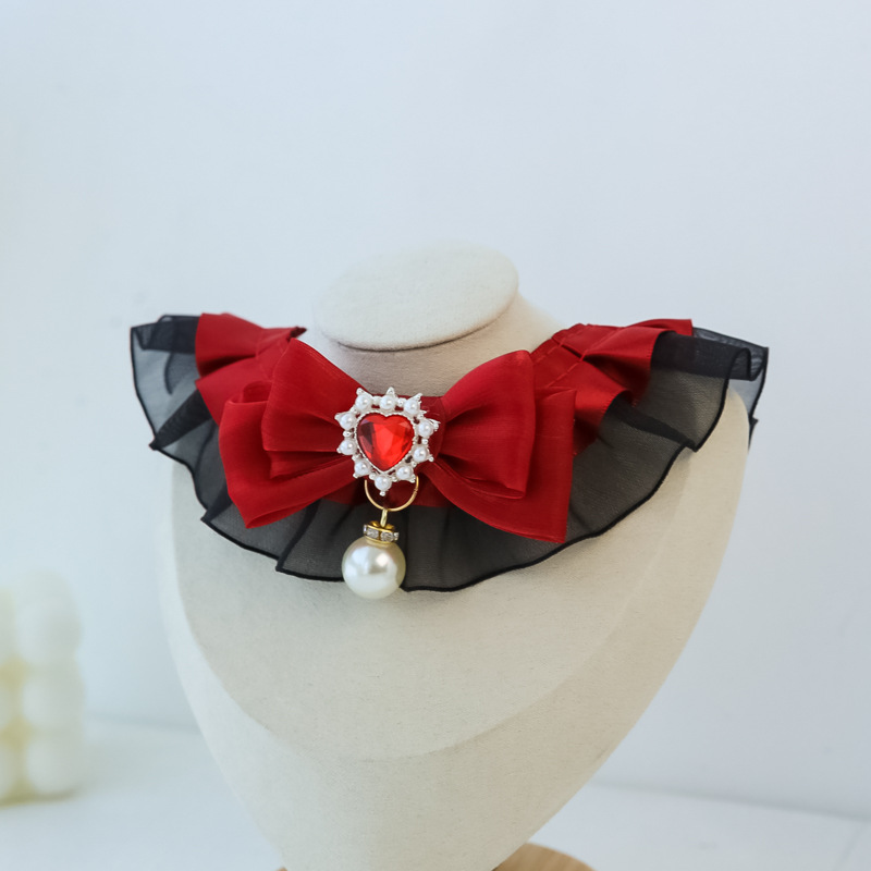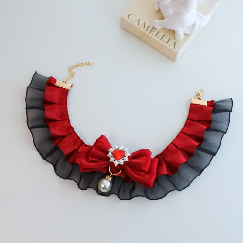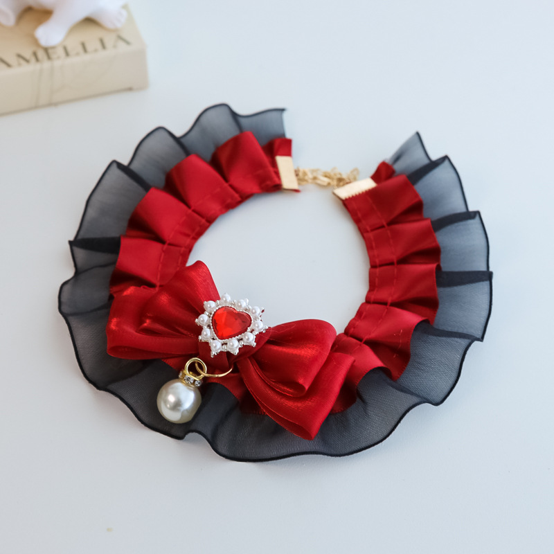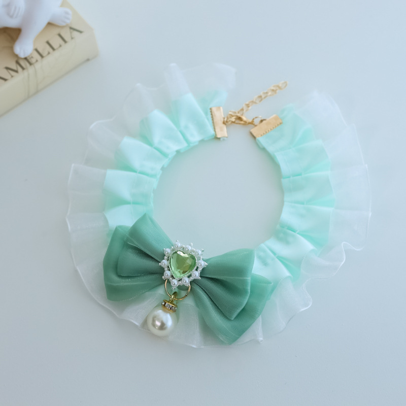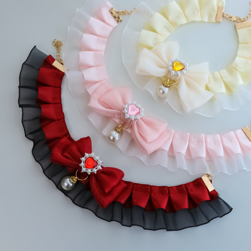 애완 동물 칼라 새끼 고양이 타액 수건 보석 레이스 깨진 꽃 활 복고풍 사랑 진주 하이 엔드 느낌