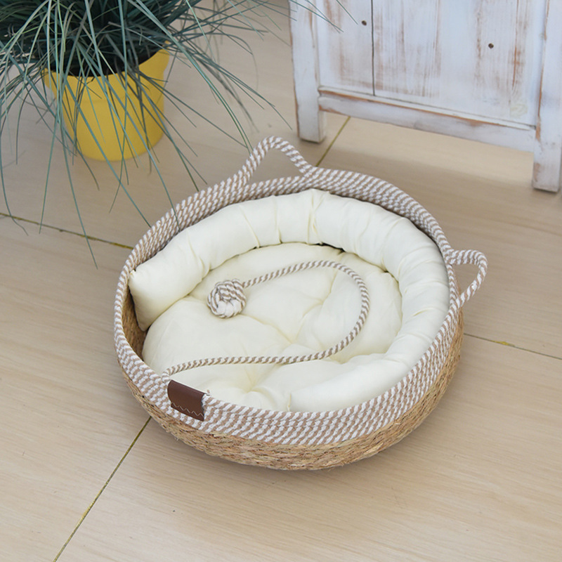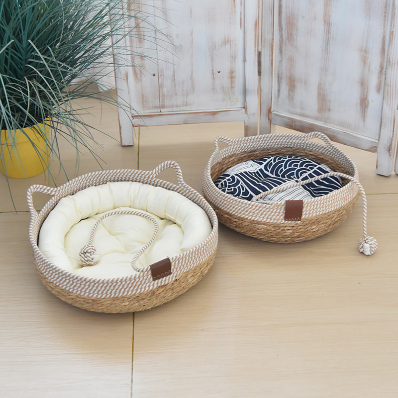 유니버설 밀짚 짠 겨울 따뜻한 고양이 둥지 푸시 짠 고양이 용품 사계절 초대형 애완 동물 둥지 재고 국경스토어 가기