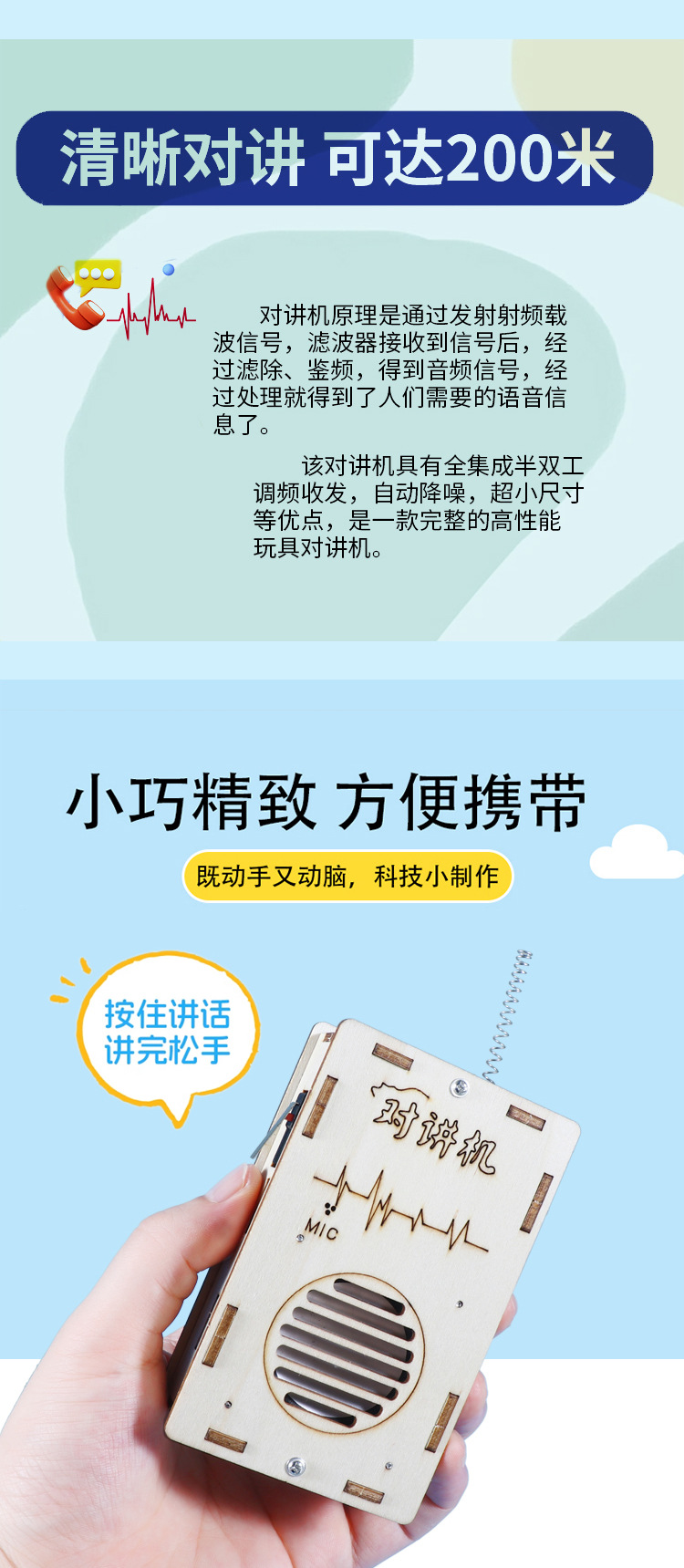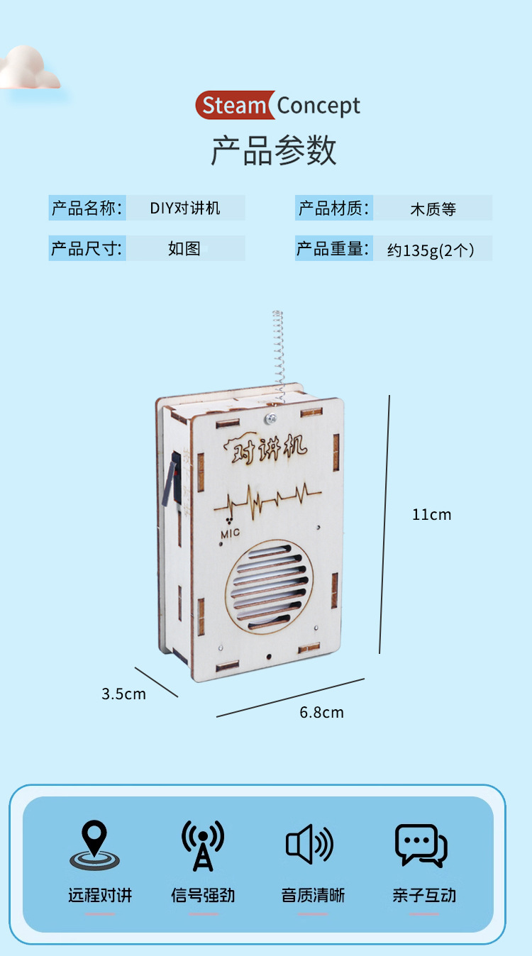 어린이 DIY 워키 토키 과학 실험 기술 작은 생산 수제 재료 패키지 무선 호출기 교육 장난감스토어 가기