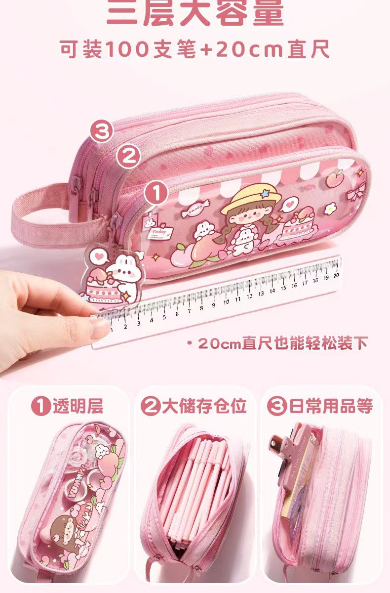 새로운 학생 3 층 휴대용 대용량 연필 케이스 만화 방수 투명 문구 케이스 유니버설 연필 케이스 소년 소녀
