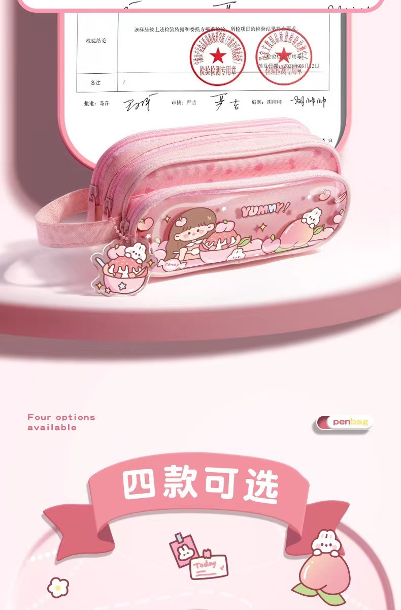 • 휴대용 3 층 연필 케이스-복숭아 복숭아 티 파티