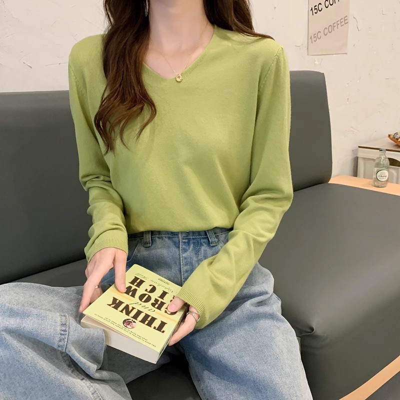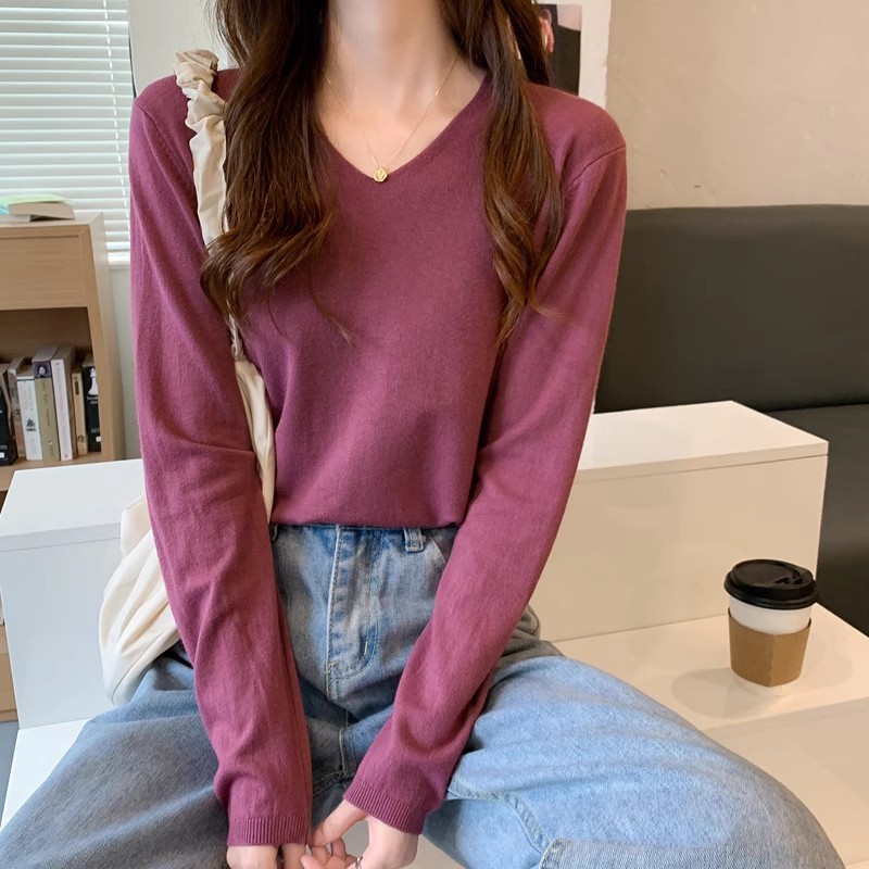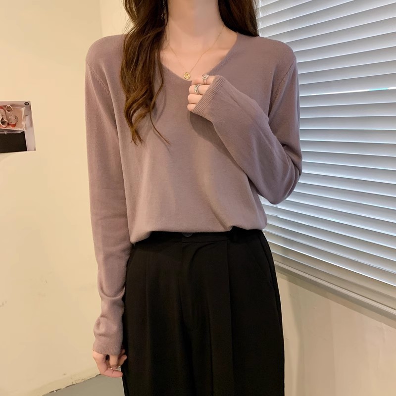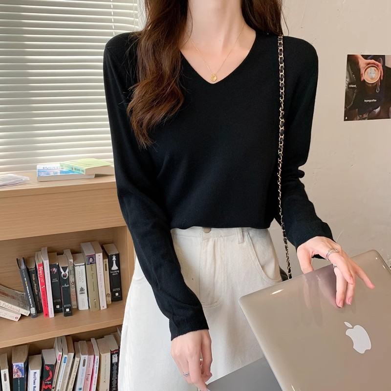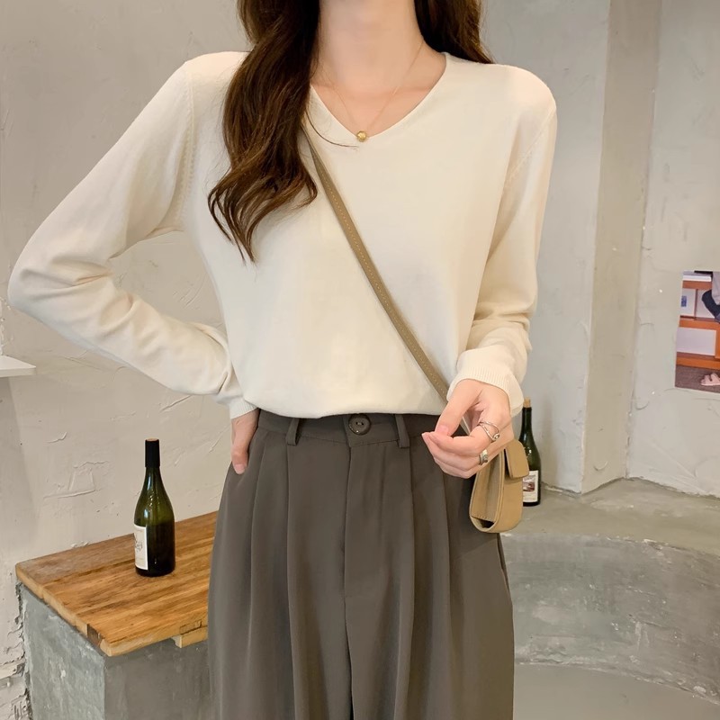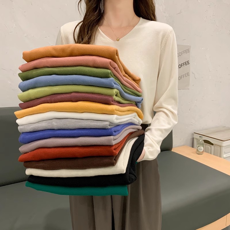 2025 가을, 겨울 한국 스타일 내부 v 넥 스웨터 긴팔 바닥 셔츠 여성용 루즈하고 다재다능한 클래식 슬리밍 스웨터스토어 가기