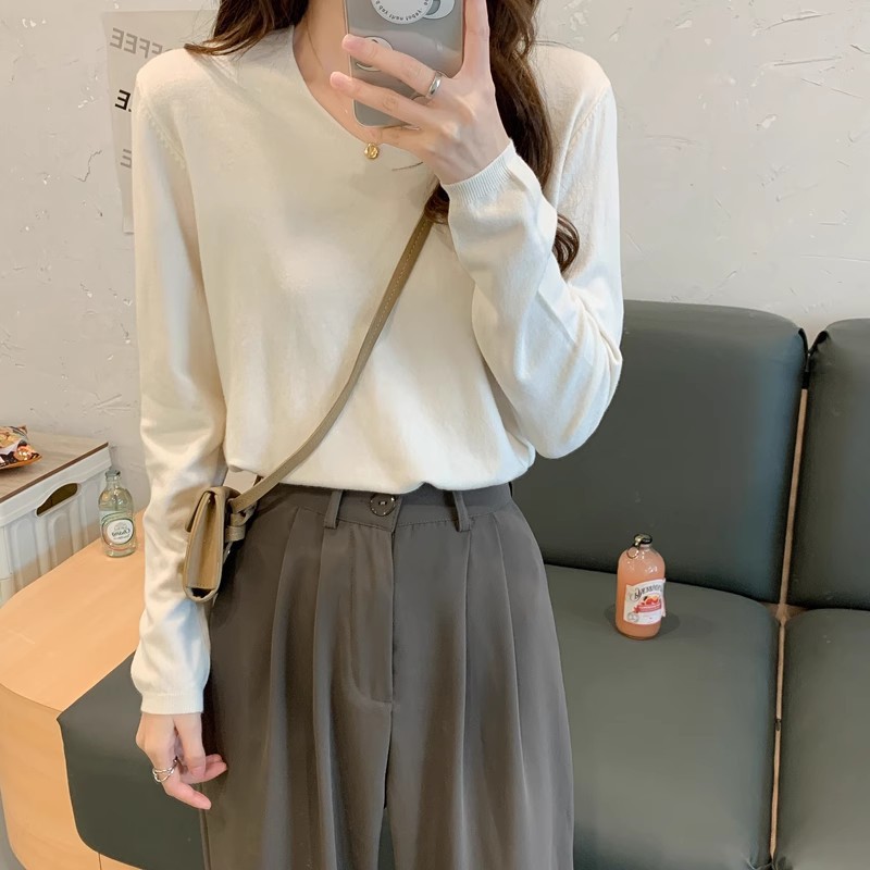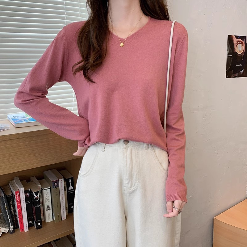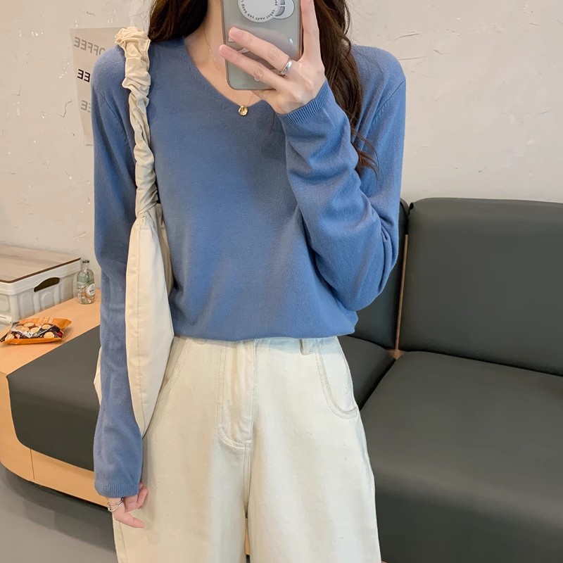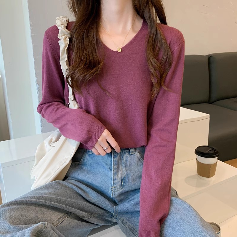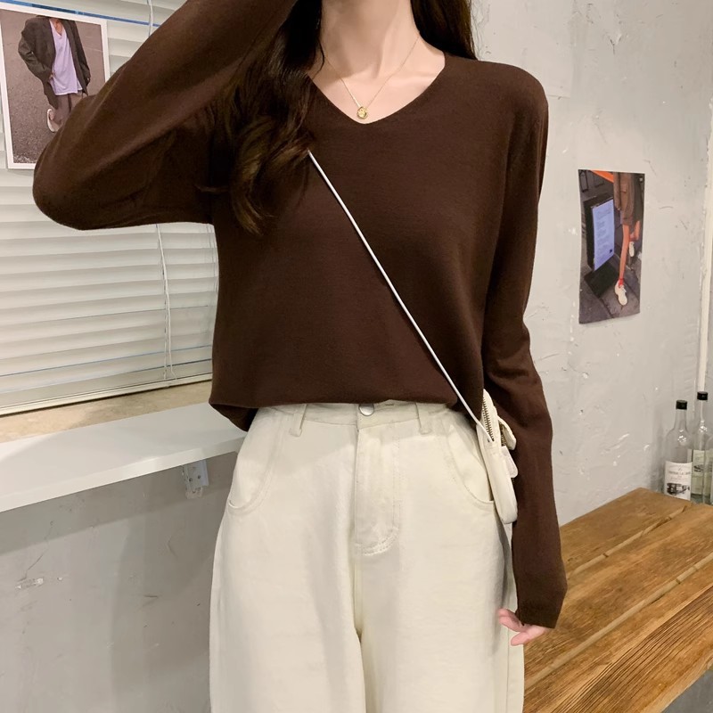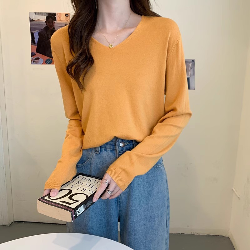 2025 가을, 겨울 한국 스타일 내부 v 넥 스웨터 긴팔 바닥 셔츠 여성용 루즈하고 다재다능한 클래식 슬리밍 스웨터스토어 가기