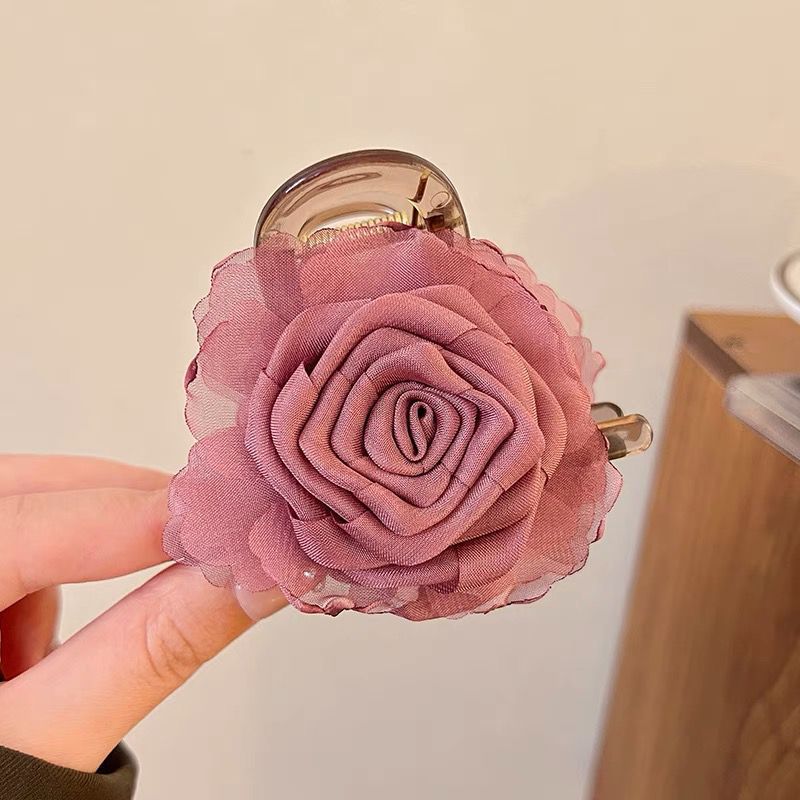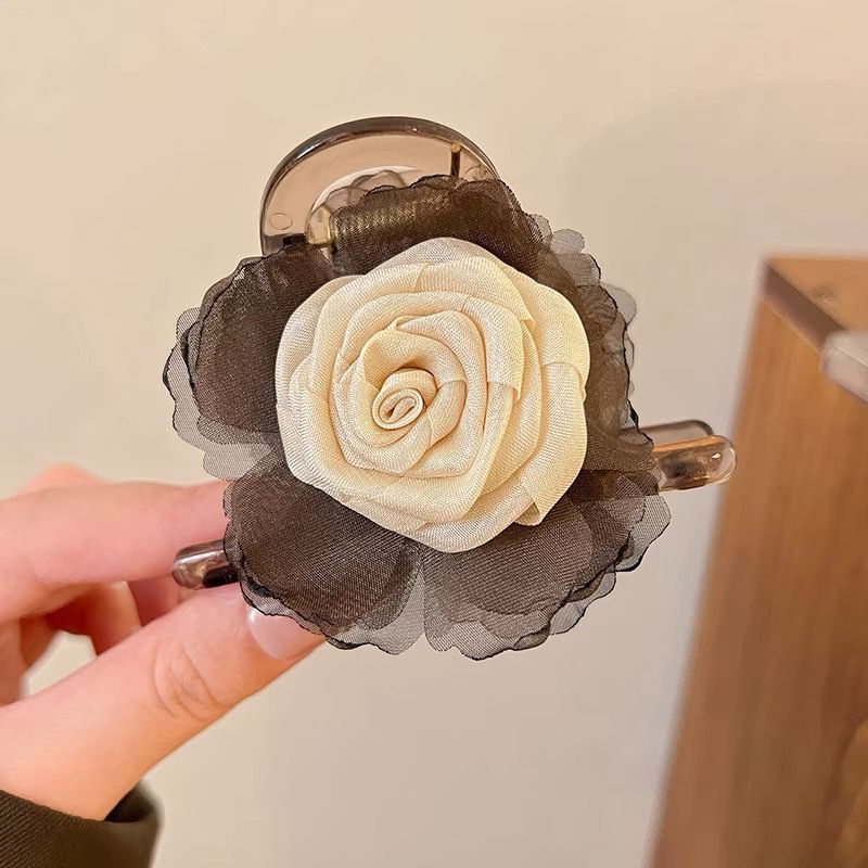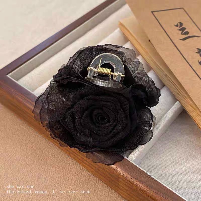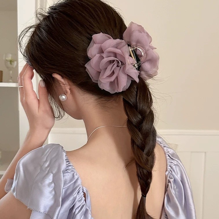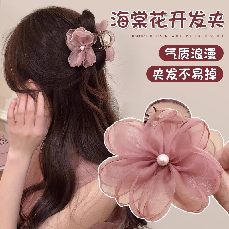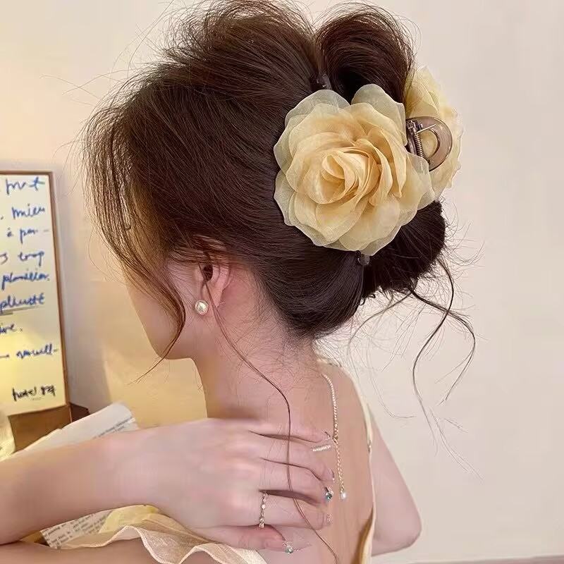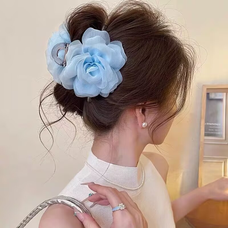 2024新款时尚气质网纱花朵发夹抓夹女高级感鲨鱼夹发卡头饰发夹