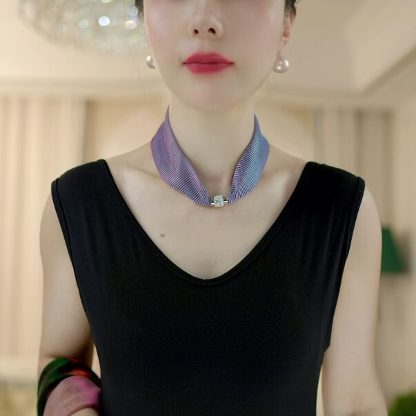 • 다크 퍼플-화려한 마그네틱 버튼 실크 스카프