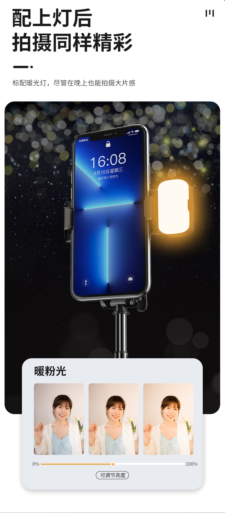 쌓인 휴대 전화 셀카 스틱 미니 시리즈 휴대 전화 홀더 통합 휴대용 텔레스코픽 블루투스 사진 셀카 스틱스토어 가기