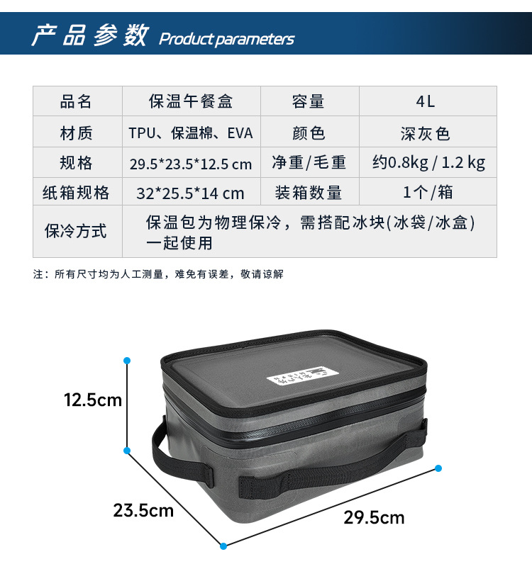 쌀 사람들 야외 4L 단열 도시락 TPU 방수 라이닝 휴대용 도시락 상자스토어 가기
