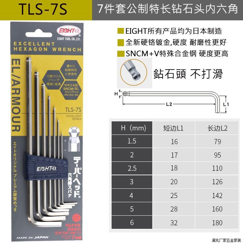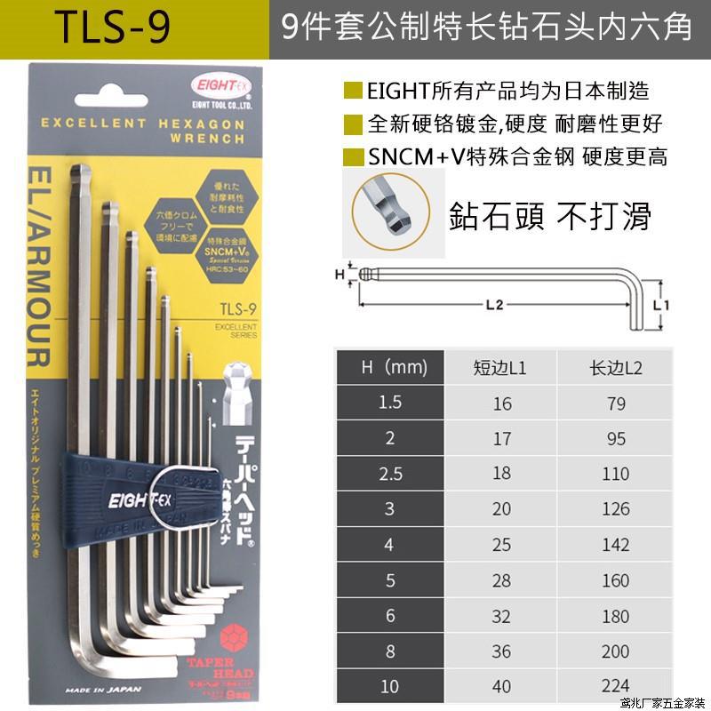 일본 Baili Allen Wrench 수입 6 각도 키 메트릭 9 피스 세트 엑스트라 롱 볼 헤드 하드 스크루 드라이버스토어 가기