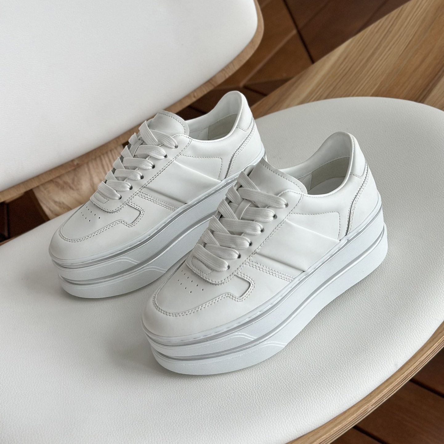 두꺼운 밑창 레이스 업 작은 흰색 신발 증가 작은 편안한 패션 스케이트 신발 라운드 머리 편안한 착용 방지 7cm 증가 여성