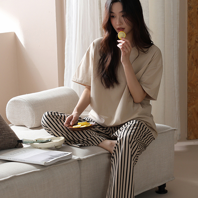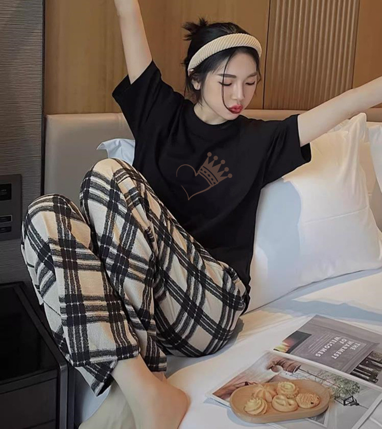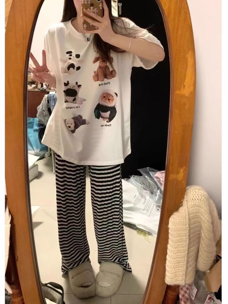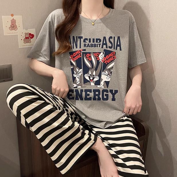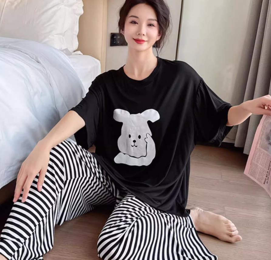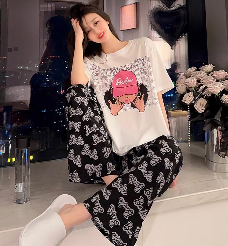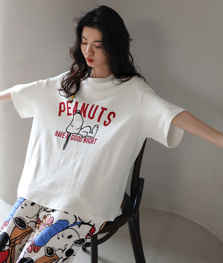 대외 무역 여름 새로운 잠옷 여성 반팔 바지 세트 달콤한 만화 스누피는 소녀의 집 옷을 입을 수 있습니다