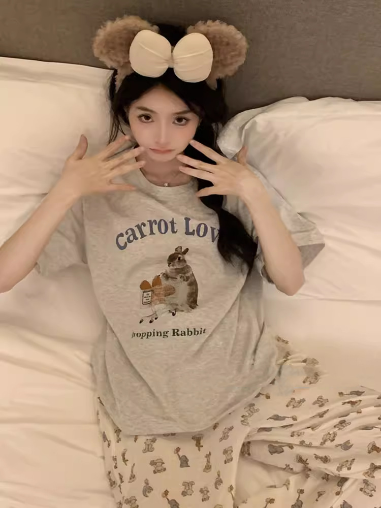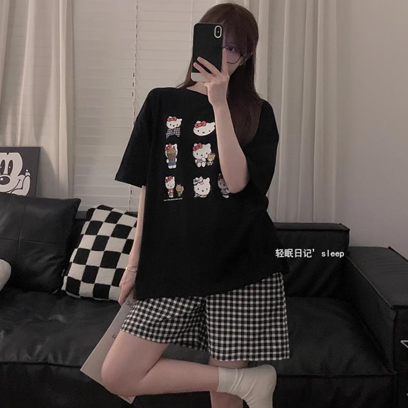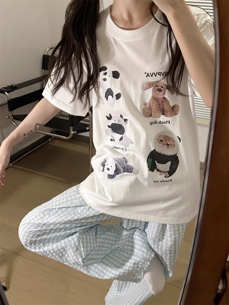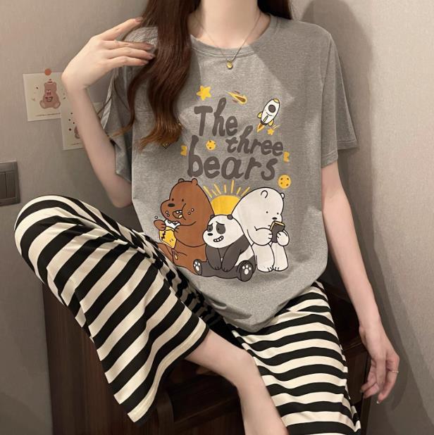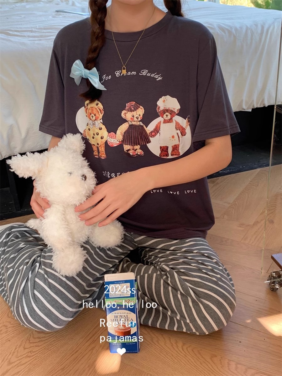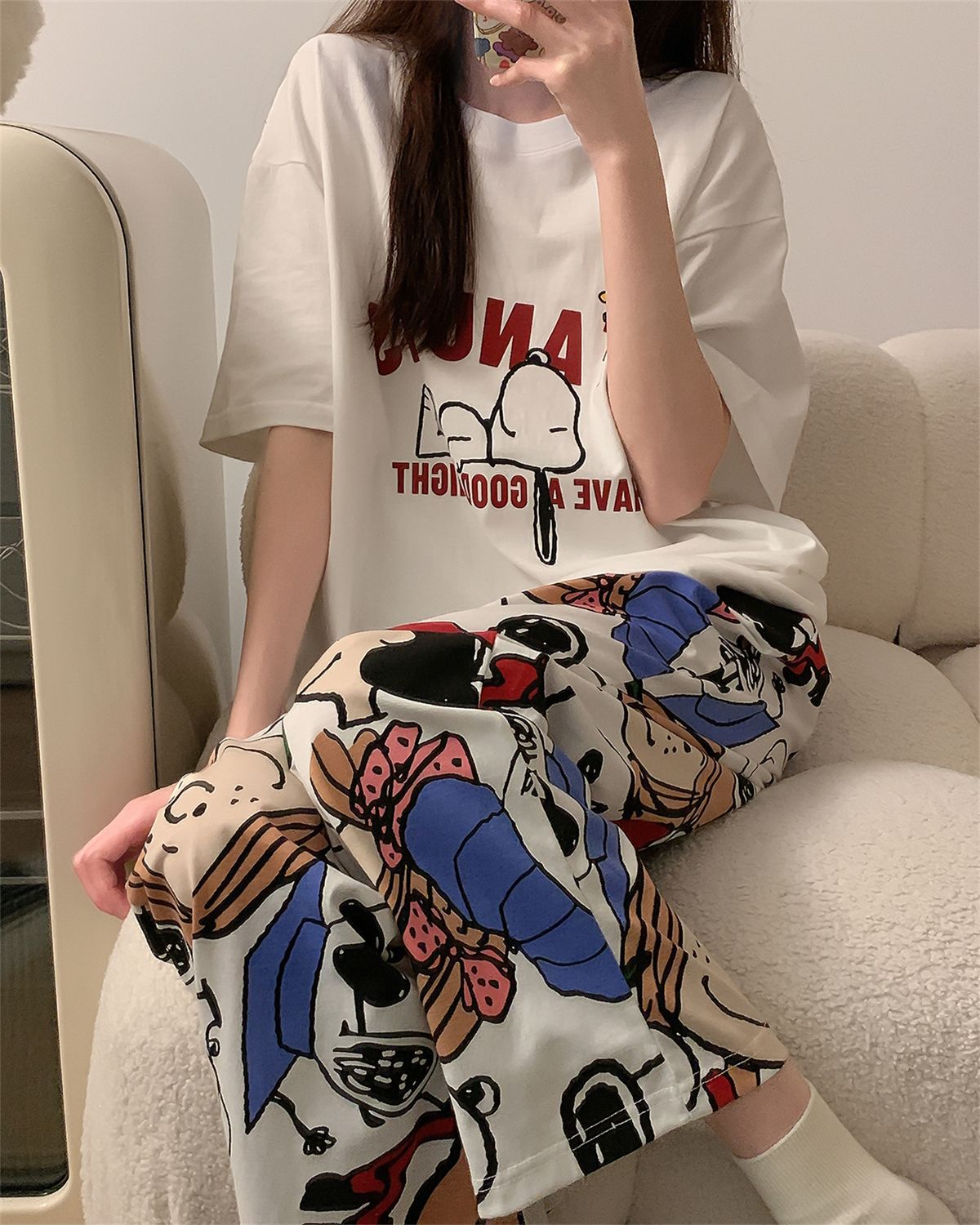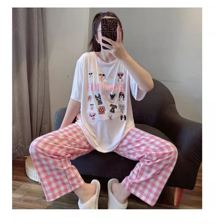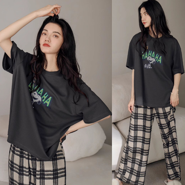대외 무역 여름 새로운 잠옷 여성 반팔 바지 세트 달콤한 만화 스누피는 소녀의 집 옷을 입을 수 있습니다스토어 가기