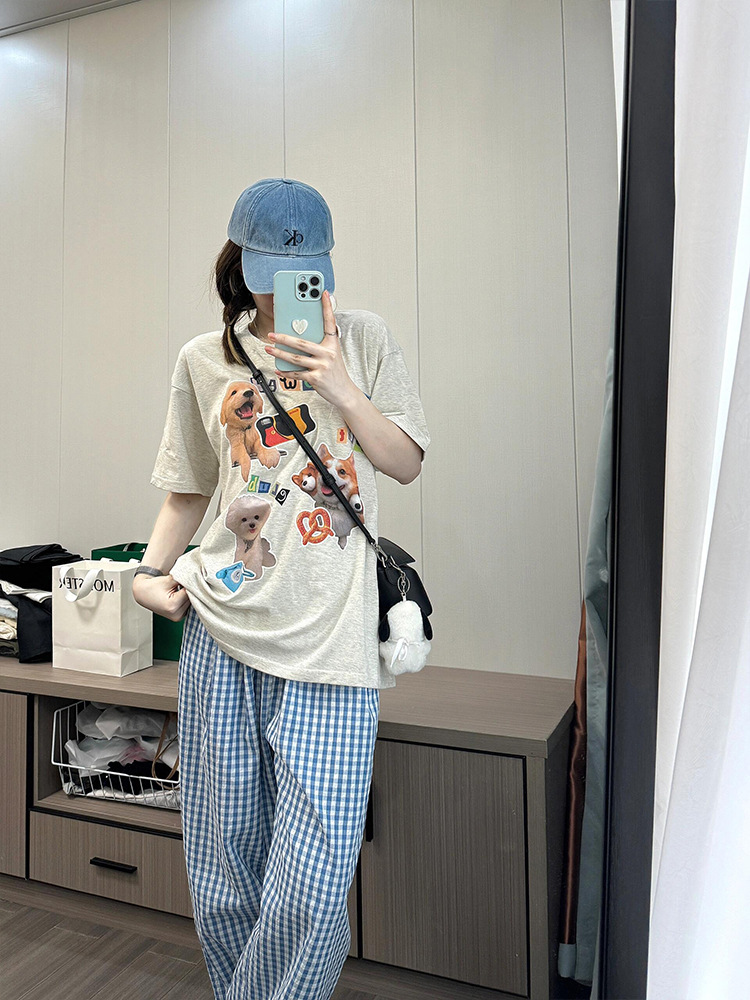 深灰绿字母史努比粗米格裤短长