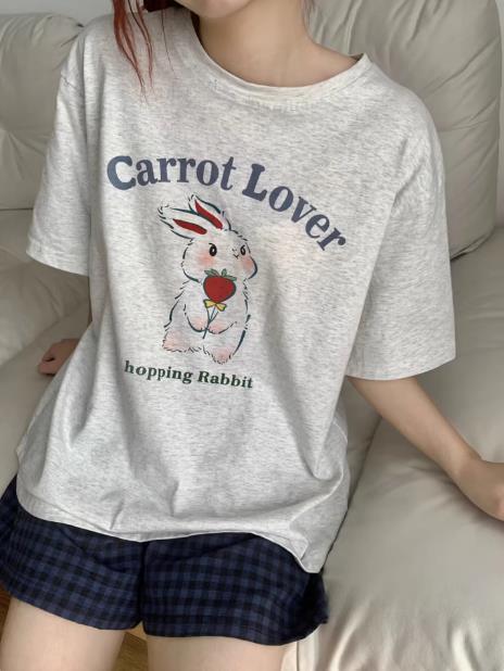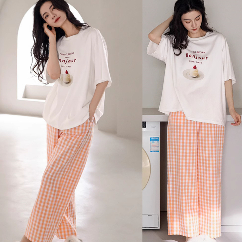 白红字母草莓蛋糕橙格裤短长
