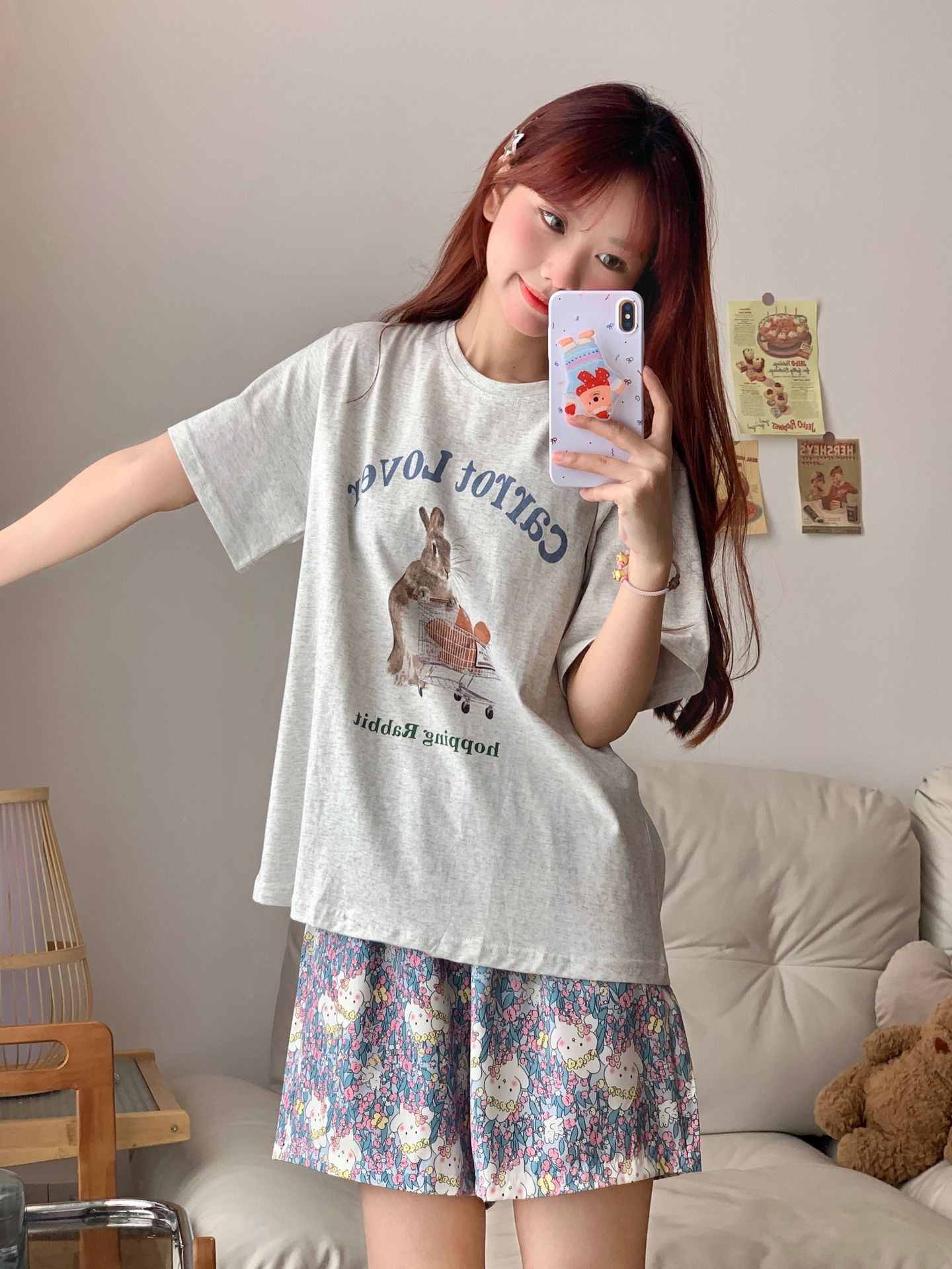 • 그레이 딸기 토끼 우란 팬츠 더블 쇼츠
