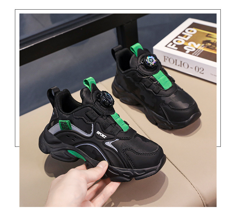 2024 새로운 소년 회전 버튼 운동화 어린이 봄과 가을 가죽 방수 중대형 어린이 캐주얼 토레 신발스토어 가기