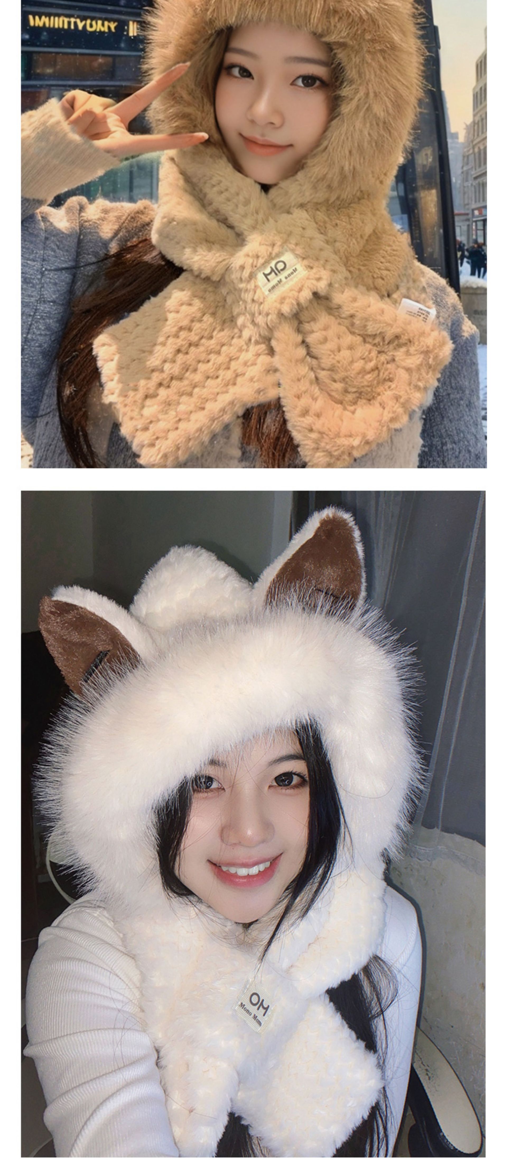 새로운 귀여운 여우 귀 모피 봉제 모자 스카프 여성의 가을 겨울 소녀 사이클링 따뜻한 목