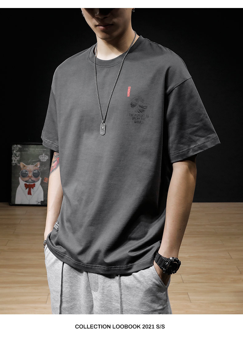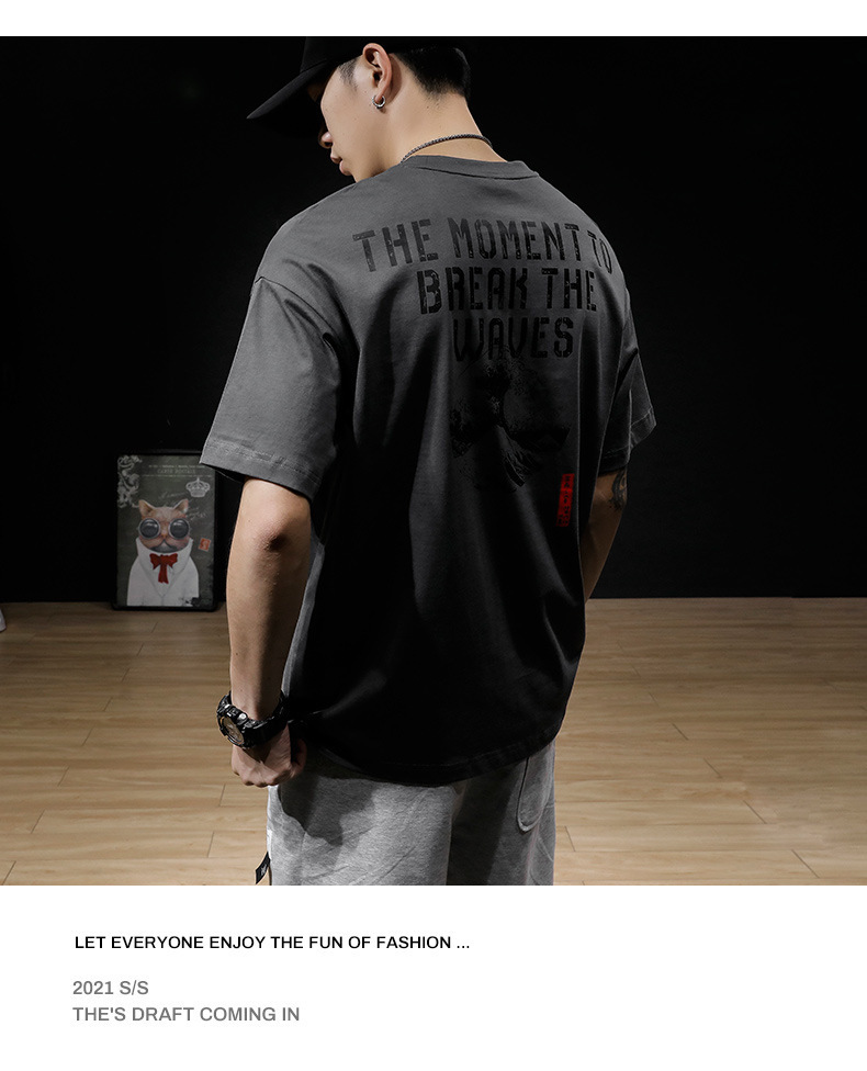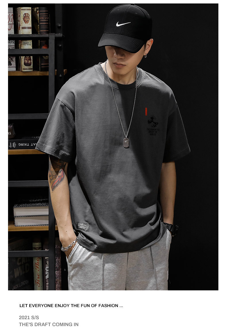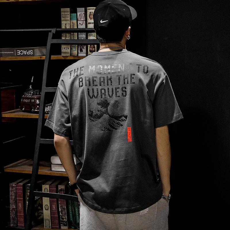 여름 헤비 코튼 반팔 티셔츠 남성 플러스 사이즈 아메리칸 스타일 레트로 트렌디 브랜드 느슨한 지방 플러스 사이즈 반소매 티셔츠 트렌디스토어 가기