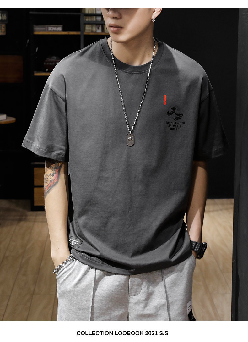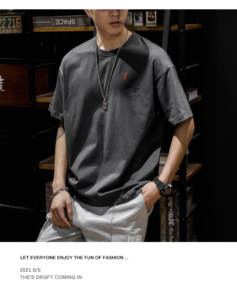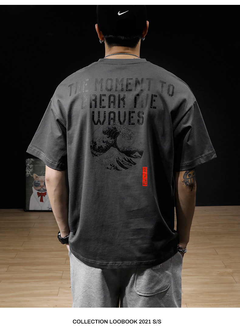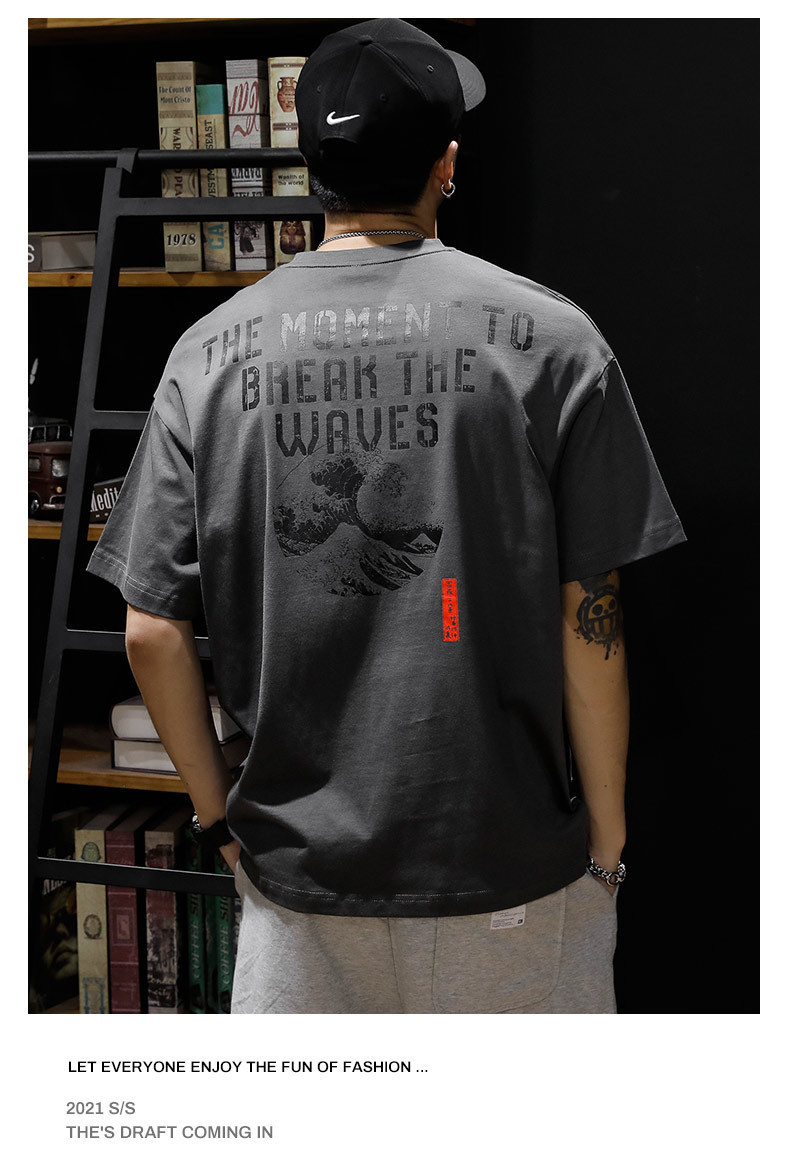 여름 헤비 코튼 반팔 티셔츠 남성 플러스 사이즈 아메리칸 스타일 레트로 트렌디 브랜드 느슨한 지방 플러스 사이즈 반소매 티셔츠 트렌디스토어 가기