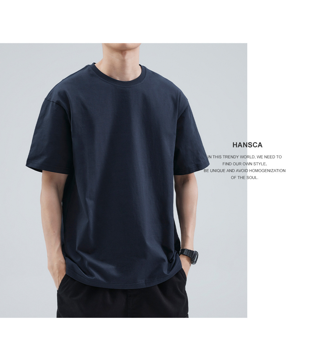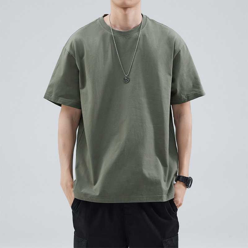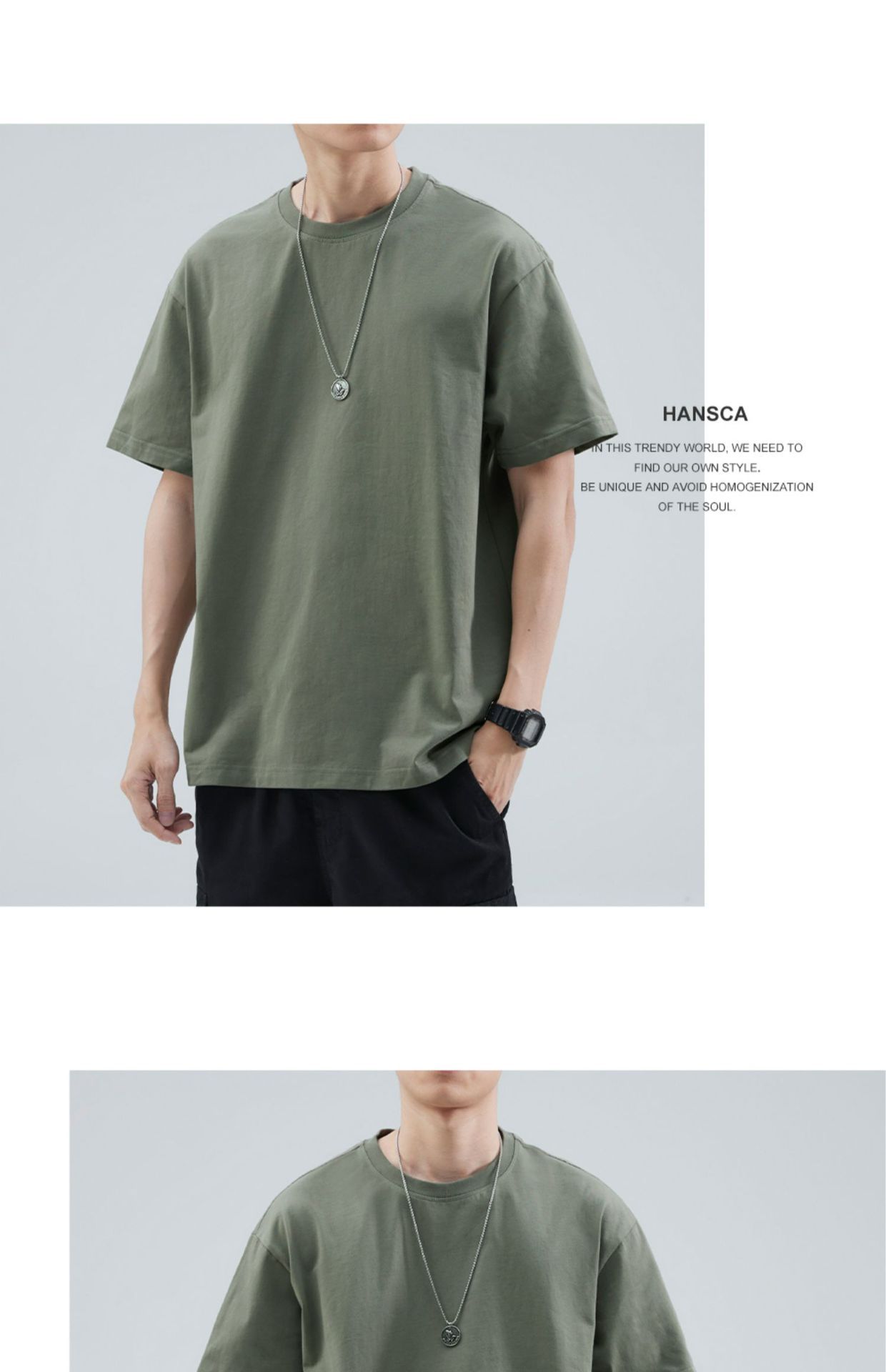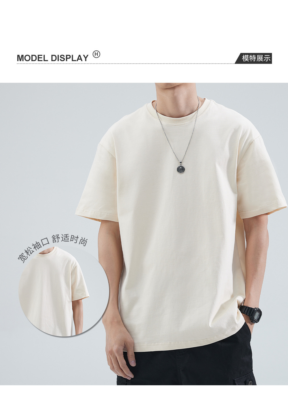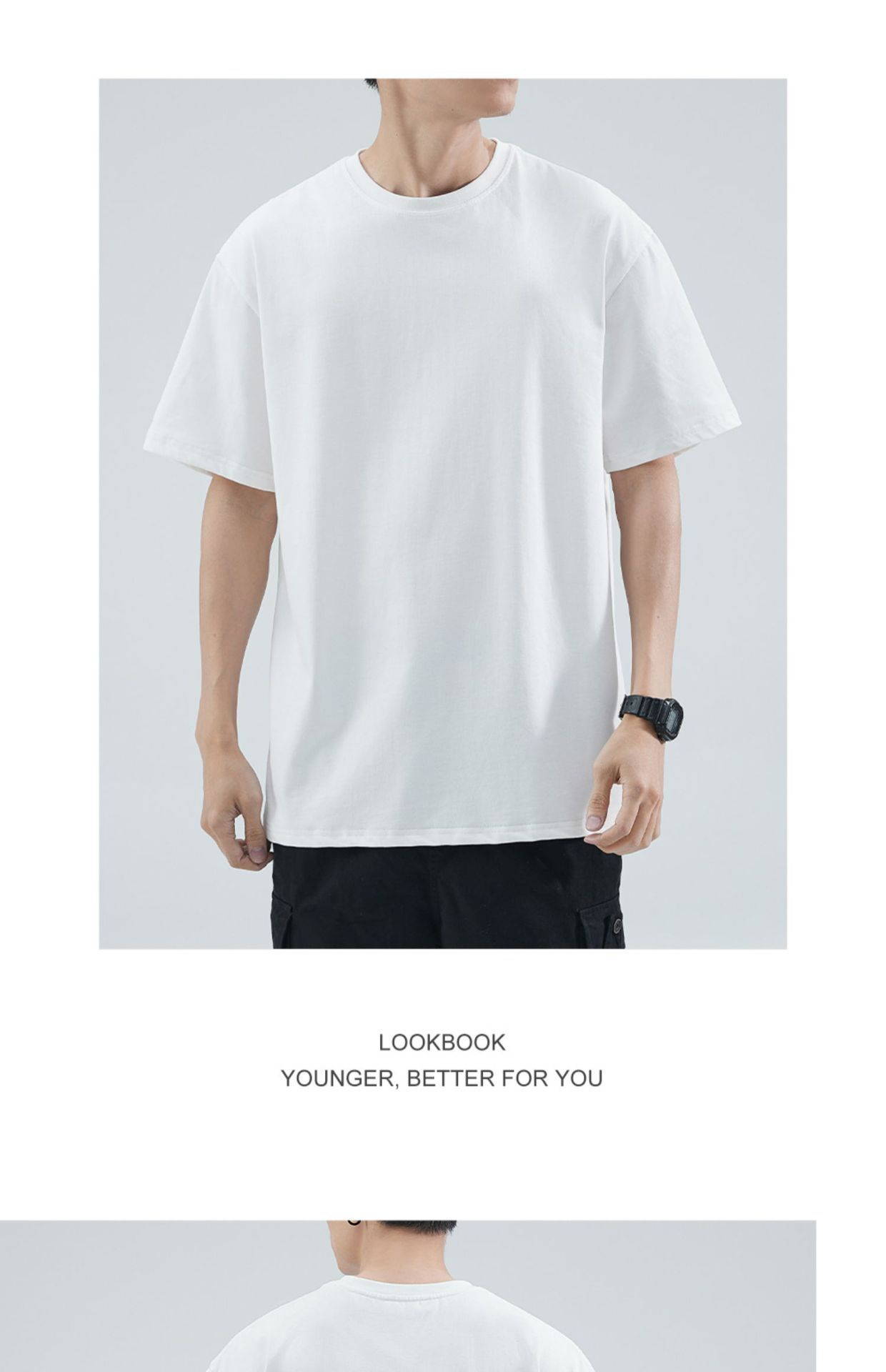 미국 260g 헤비 코튼 반팔 티셔츠 남자 크루 넥 루즈 올 매치 남자 퓨어 화이트 3 바늘베이스 셔츠스토어 가기