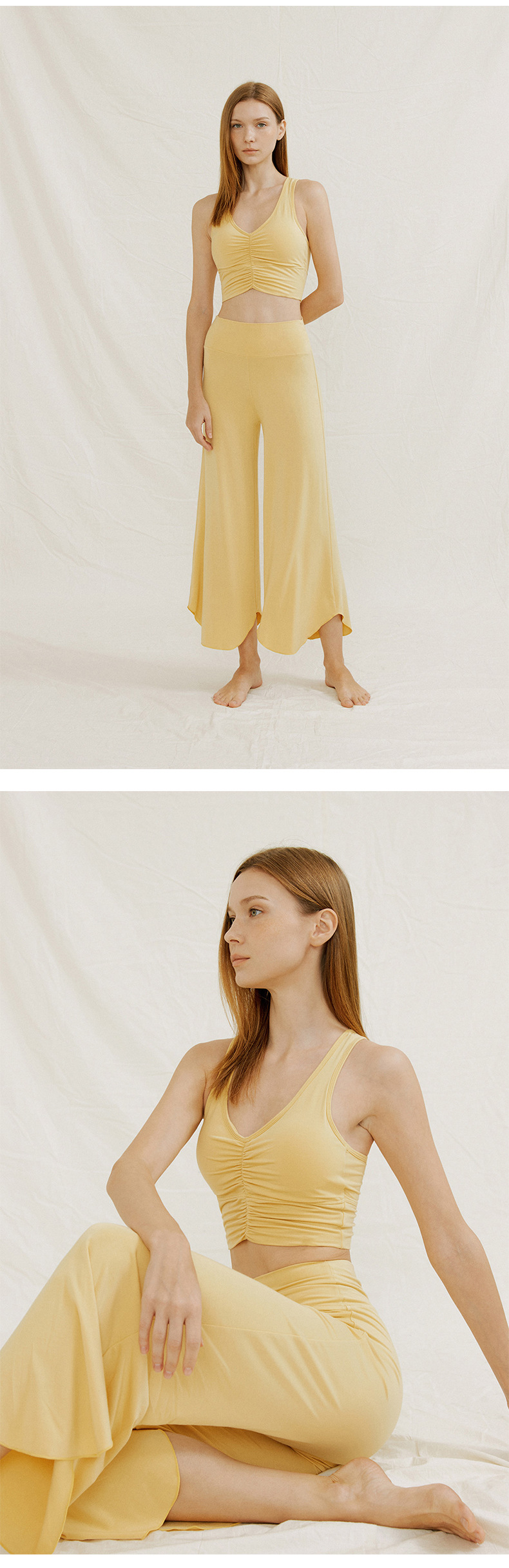 24 여름 기질 요가 의류 조끼 넓은 다리 바지 세트 높은 허리 자른 바지 카미 솔 슬림 핏 필라테스 세트스토어 가기