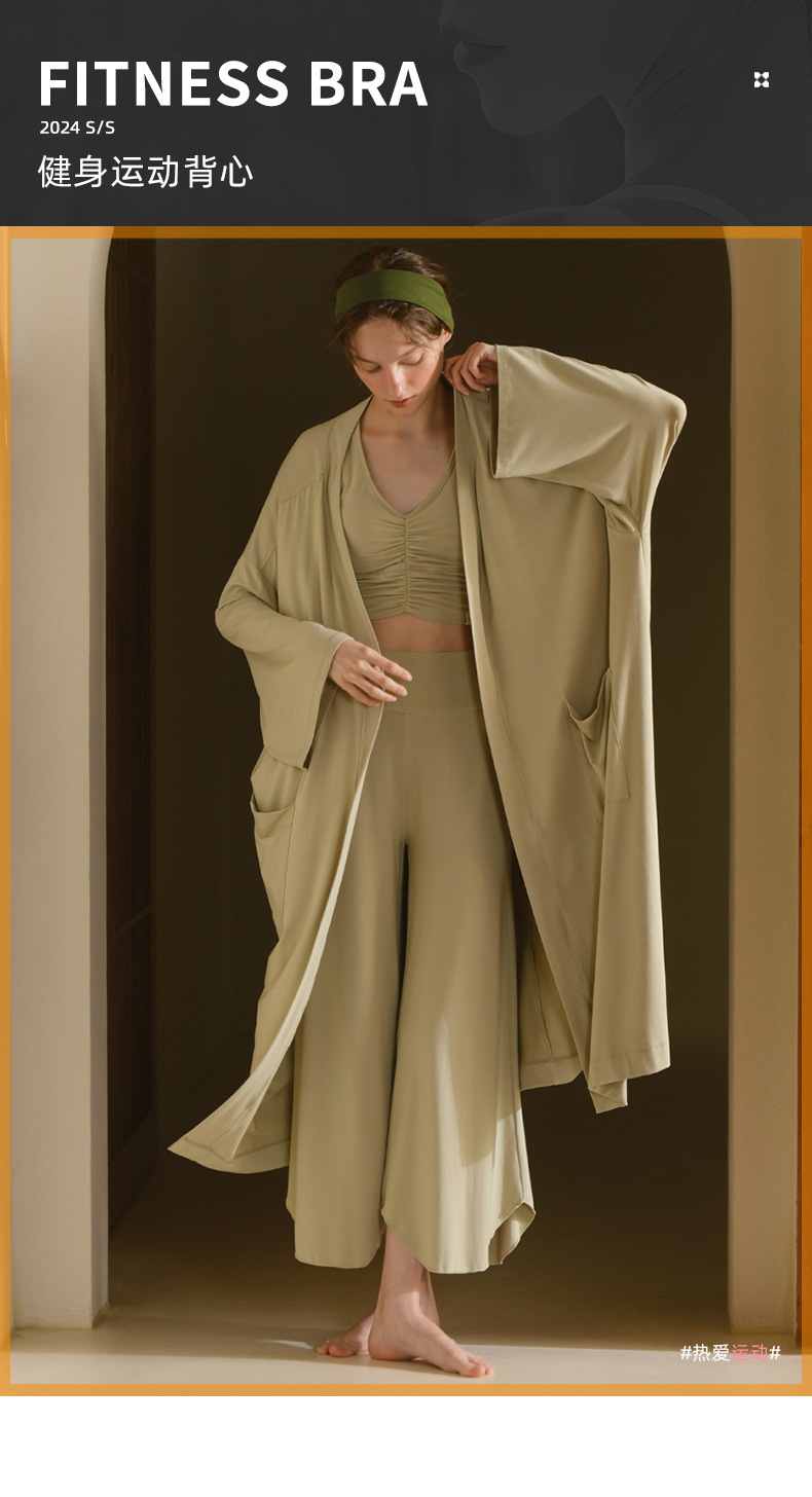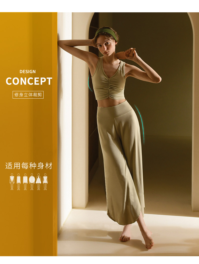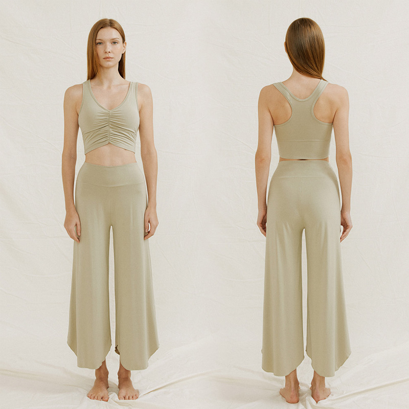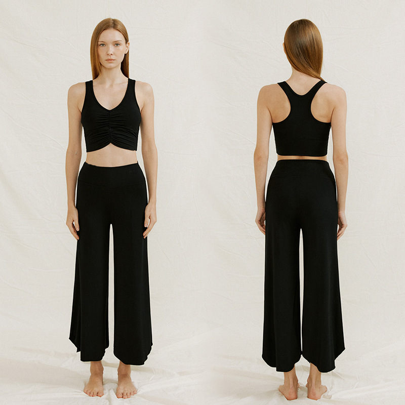 24 여름 기질 요가 의류 조끼 넓은 다리 바지 세트 높은 허리 자른 바지 카미 솔 슬림 핏 필라테스 세트