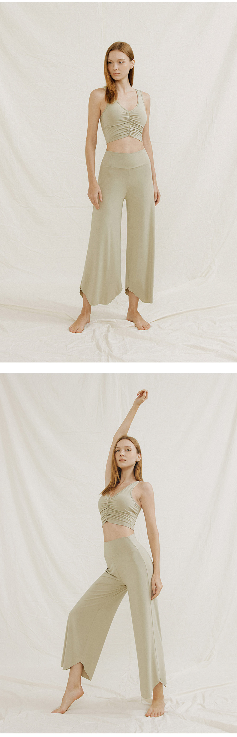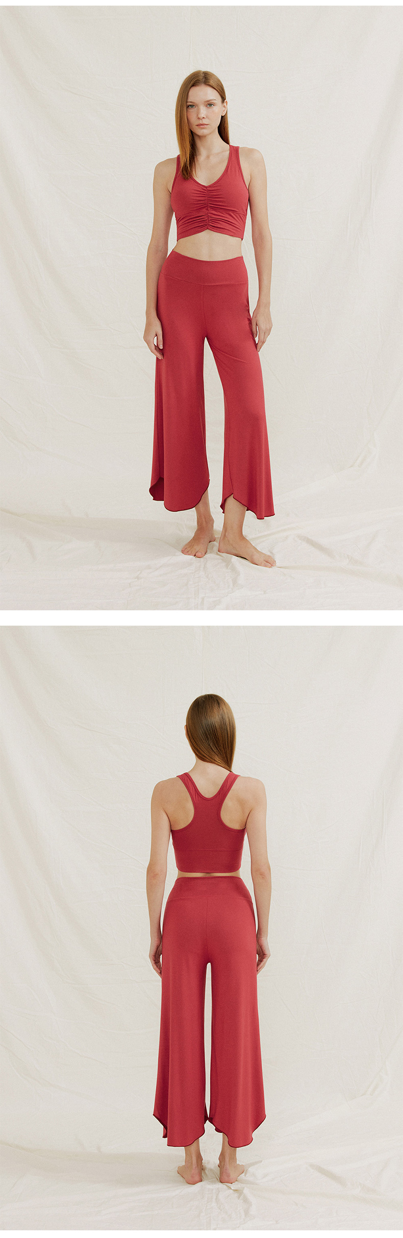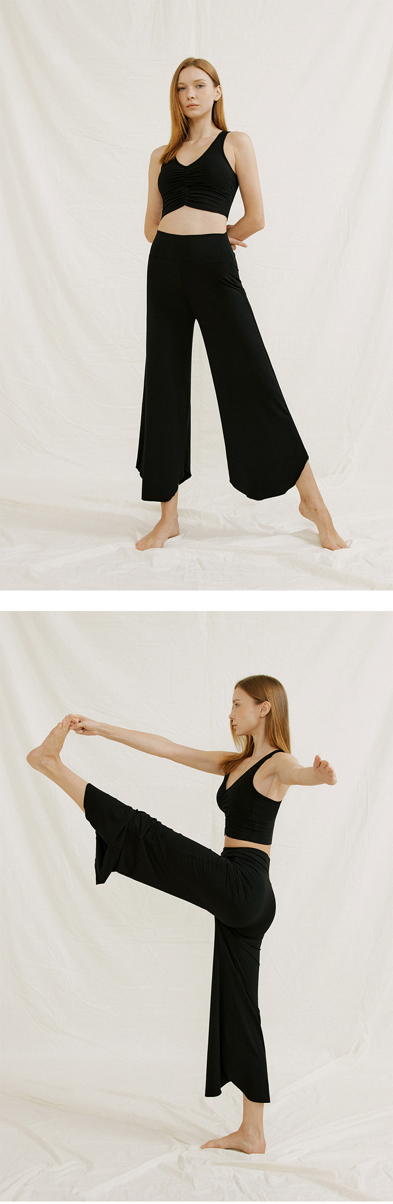 24 여름 기질 요가 의류 조끼 넓은 다리 바지 세트 높은 허리 자른 바지 카미 솔 슬림 핏 필라테스 세트