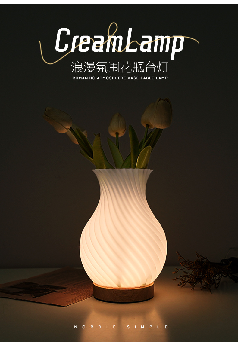 크림 스타일 테이블 램프 고급 감각 연구 침실 수면 침대 램프 분위기 원격 제어 나이트 라이트 레트로 꽃병 램프