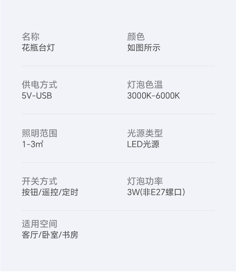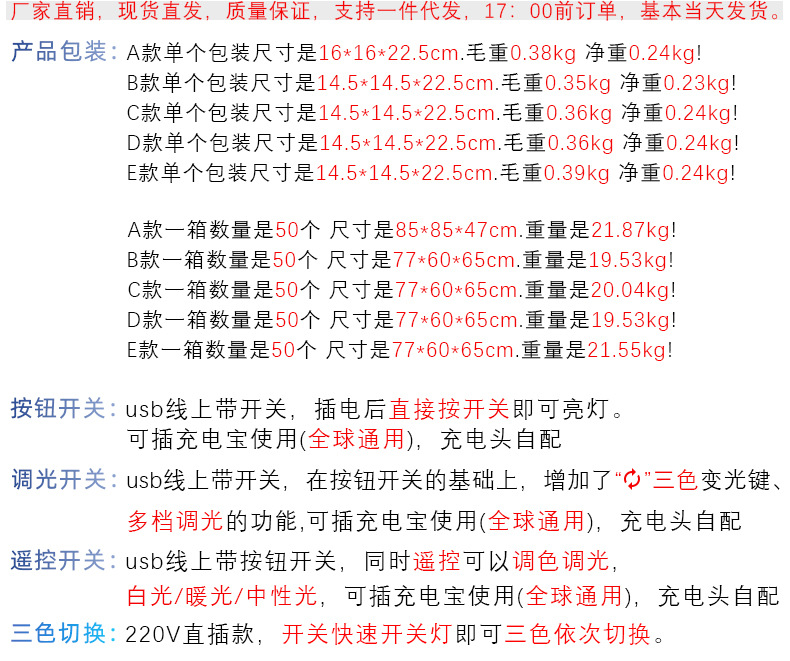 • USB(따뜻한 빛) 첫 번째 기어 스위치