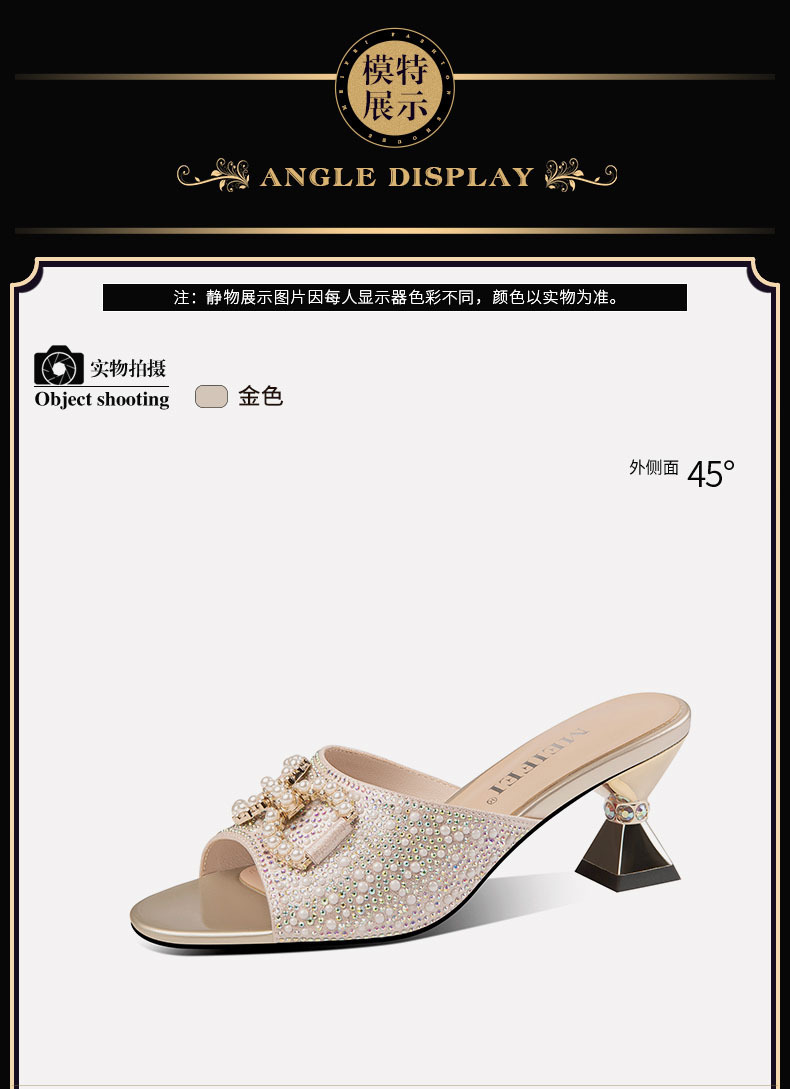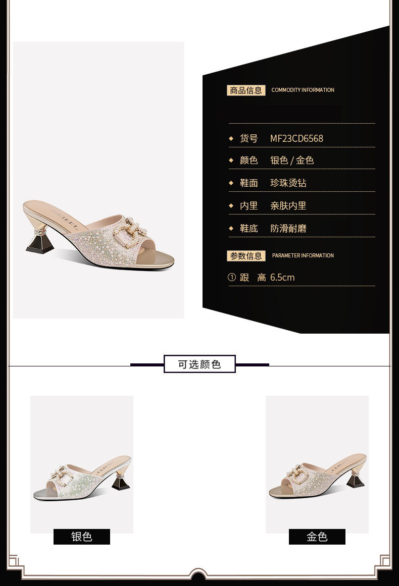 여름 여성의 두꺼운 하이힐 우아한 한 단어 라인 스톤 캐주얼 패션 패션 여성 신발 황금 실버스토어 가기