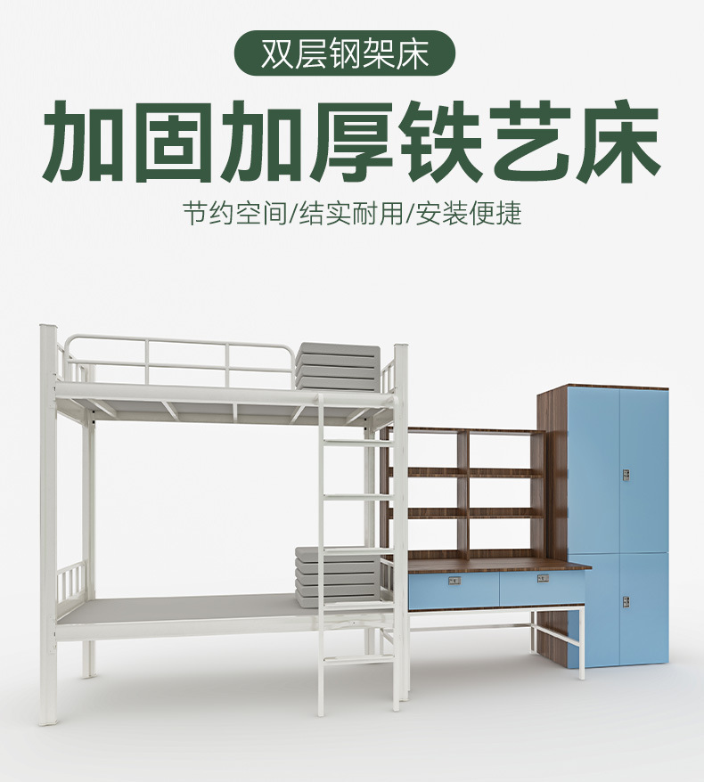 공장 도매 두꺼운 이중층 철제 침대 대학생 기숙사 높고 낮은 침대 건설 현장 이층 철제 침대스토어 가기