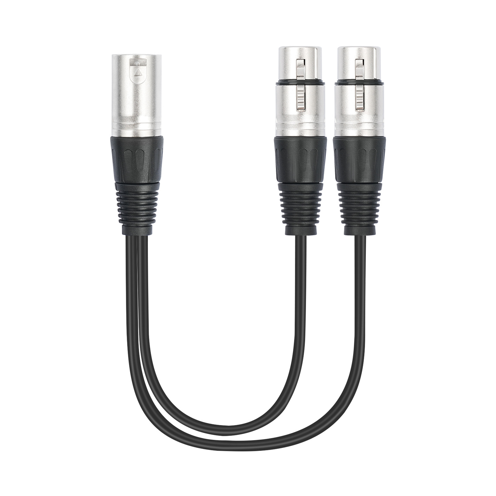 3 针 XLR 公头到双 XLR 母头 Y 型电缆,该 Y 型电缆设计用于将2个麦克风输出连接到调音台XLR 输入,非常适合在设备麦克风输入接口不够时将2个麦克风的信号合并到调音台输入端口上。