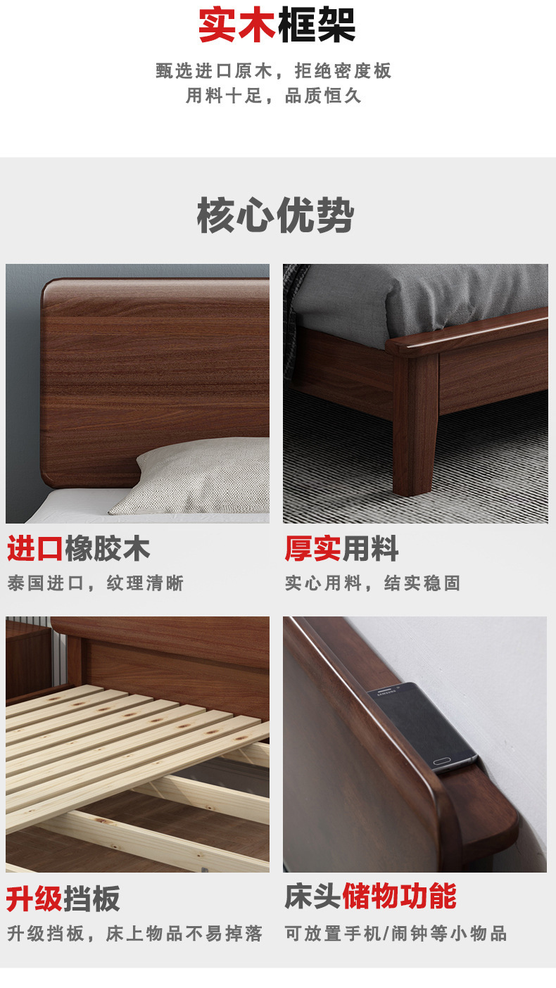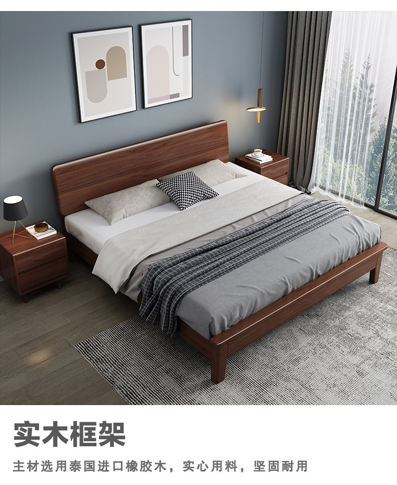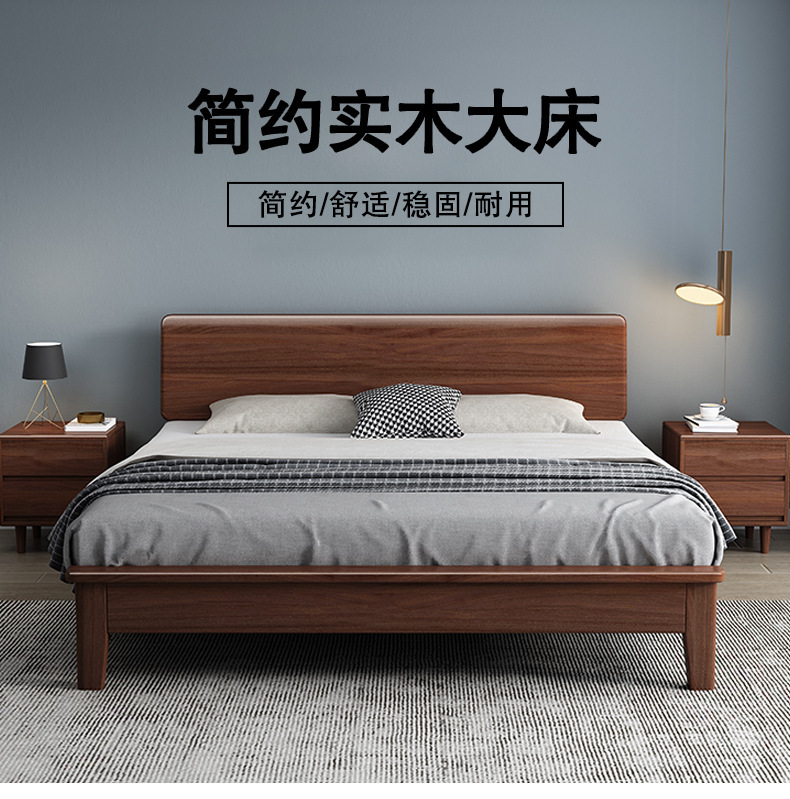 북유럽 단단한 나무 침대 1.2 m 간단한 1.8 m 더블 침대 경제적 마스터 침실 아파트 홈스테이 1.5 m 침대 홈스토어 가기
