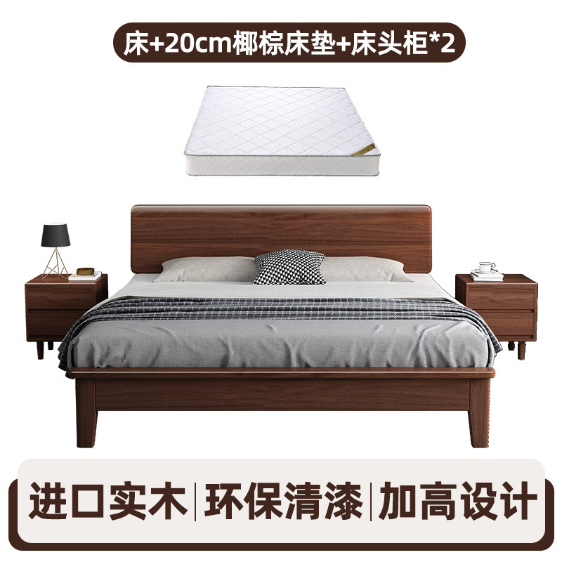 • 원목 침대 + 20cm 코코넛 야자 매트리스 + 침대 옆 탁자 * 1