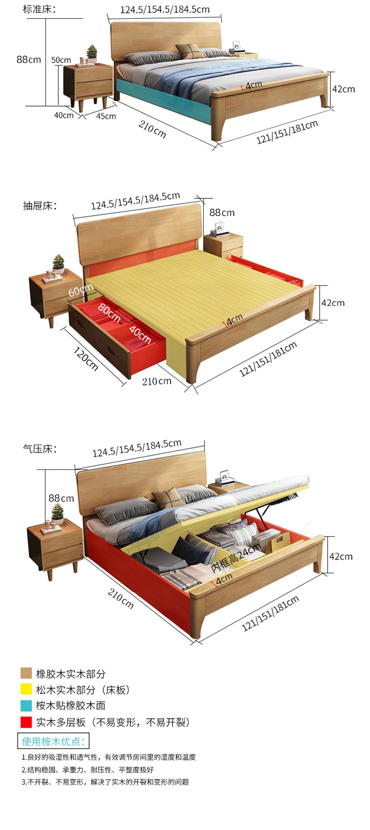 • 원목 침대 + 20cm 라텍스 매트리스 + 침대 옆 탁자 * 1