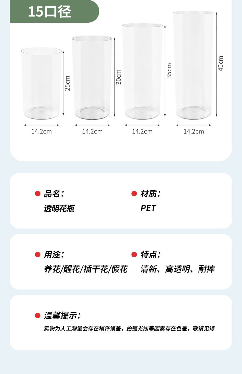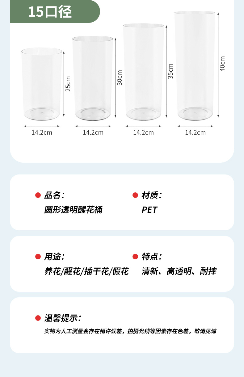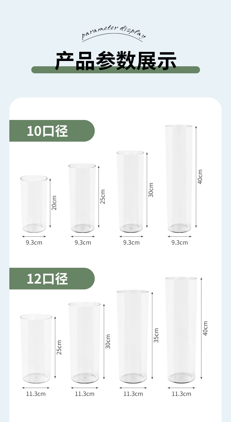 아크릴 낙하 방지 꽃병 수경 꽃 배열 풍부한 대나무 투명 스트레이트 튜브 꽃 거실 장식 각성 버킷