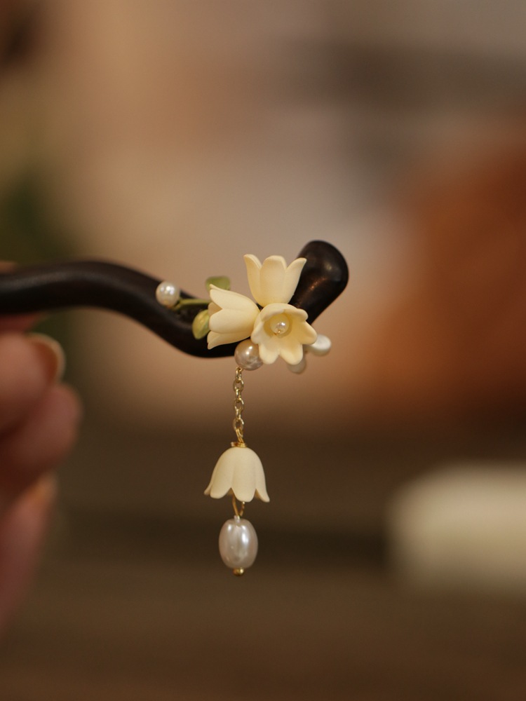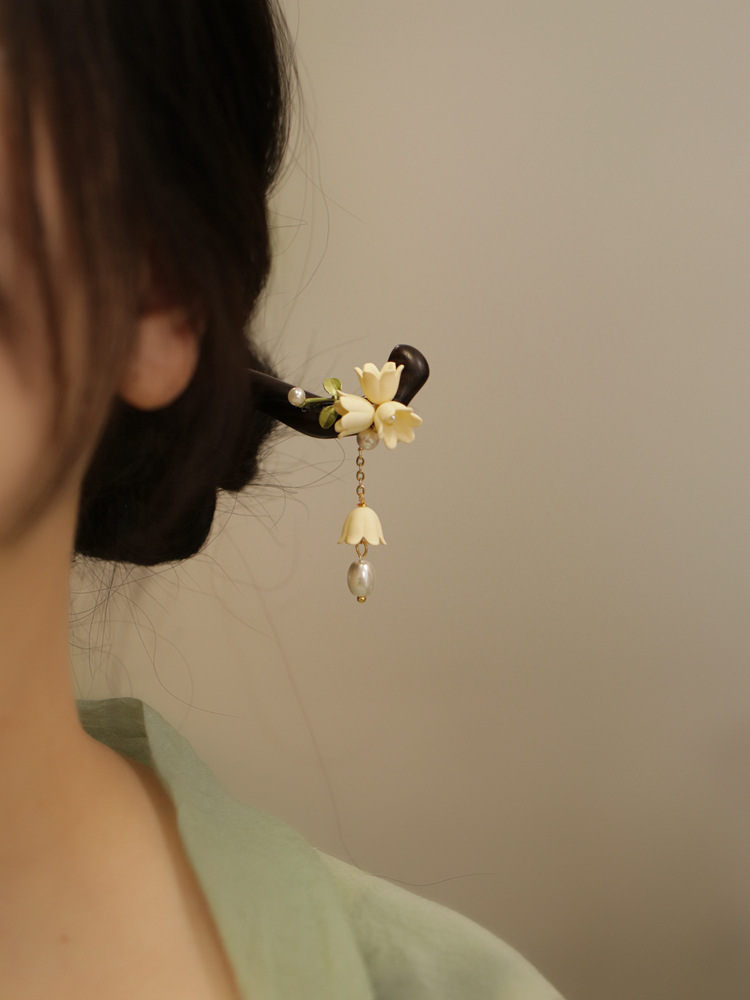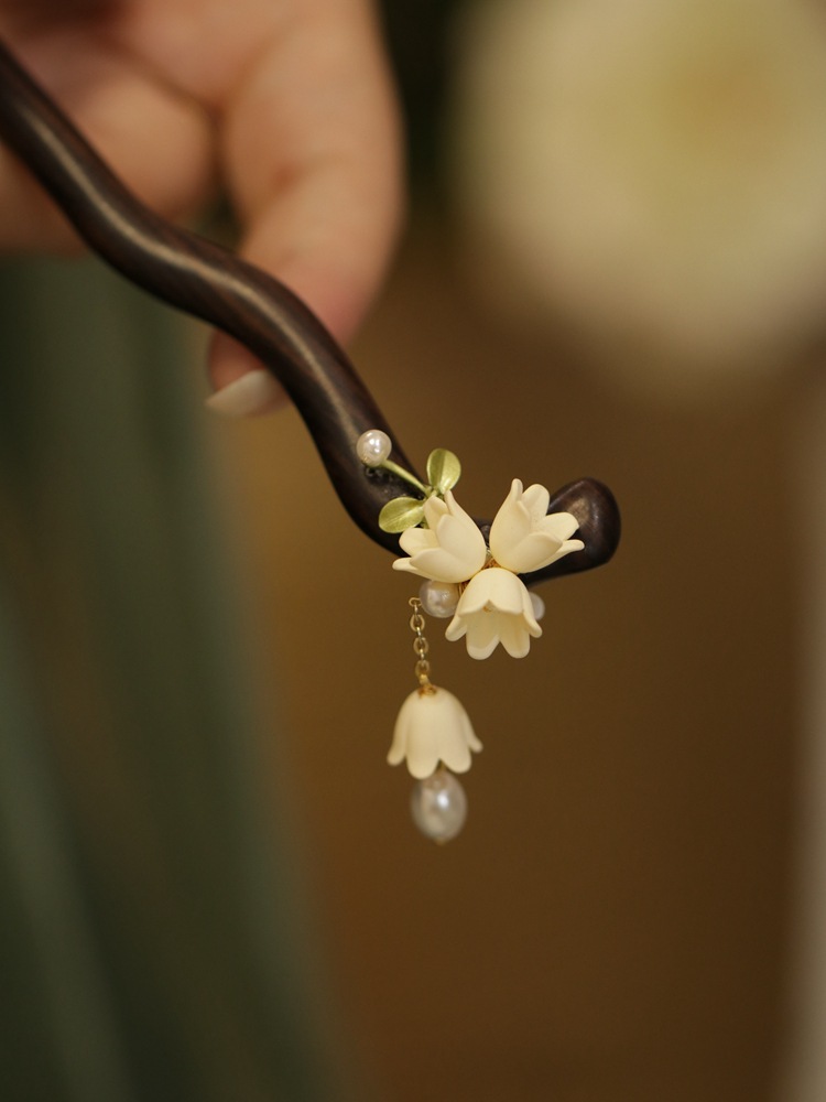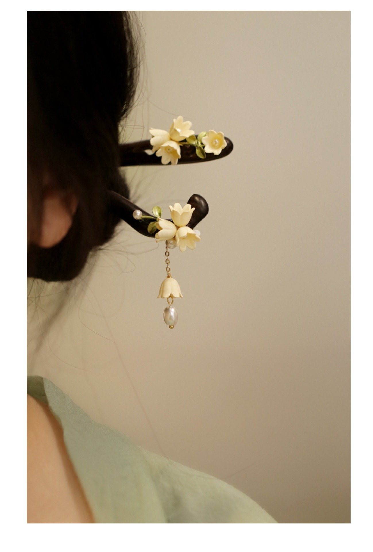 나무 머리핀 새로운 중국 스타일 머리핀 멋진 느낌 머리 머리핀 여성 하이 엔드 느낌 릴리 오브 더 밸리 우아한 간단한 머리 머리핀스토어 가기
