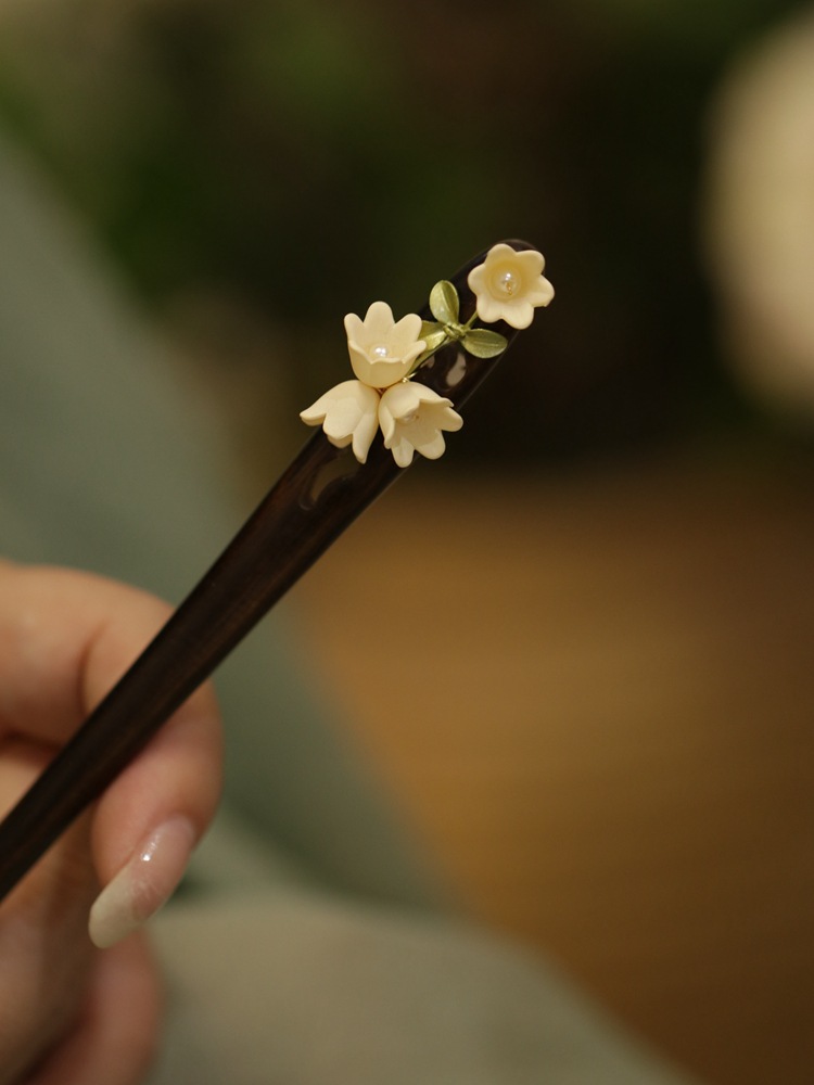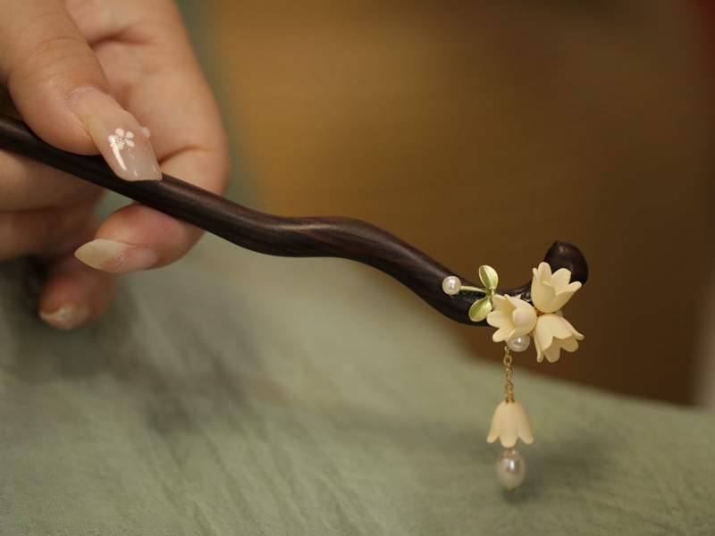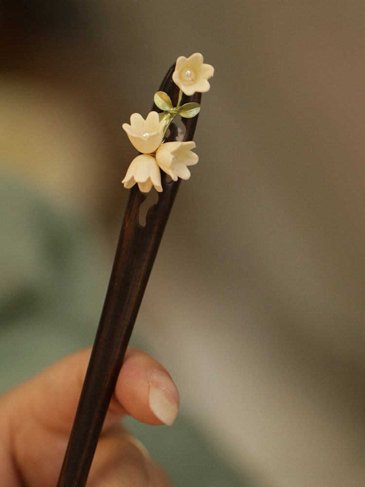 나무 머리핀 새로운 중국 스타일 머리핀 멋진 느낌 머리 머리핀 여성 하이 엔드 느낌 릴리 오브 더 밸리 우아한 간단한 머리 머리핀