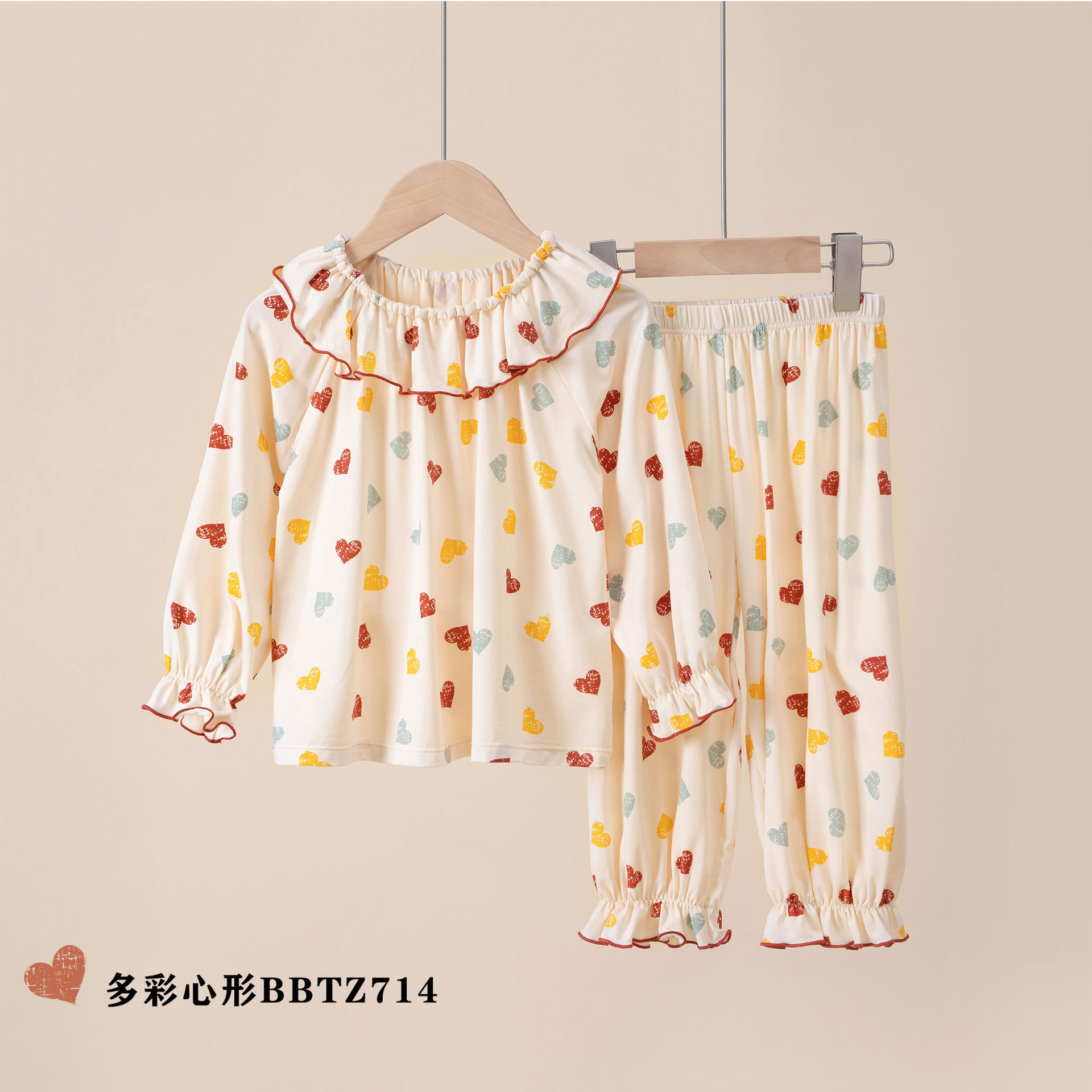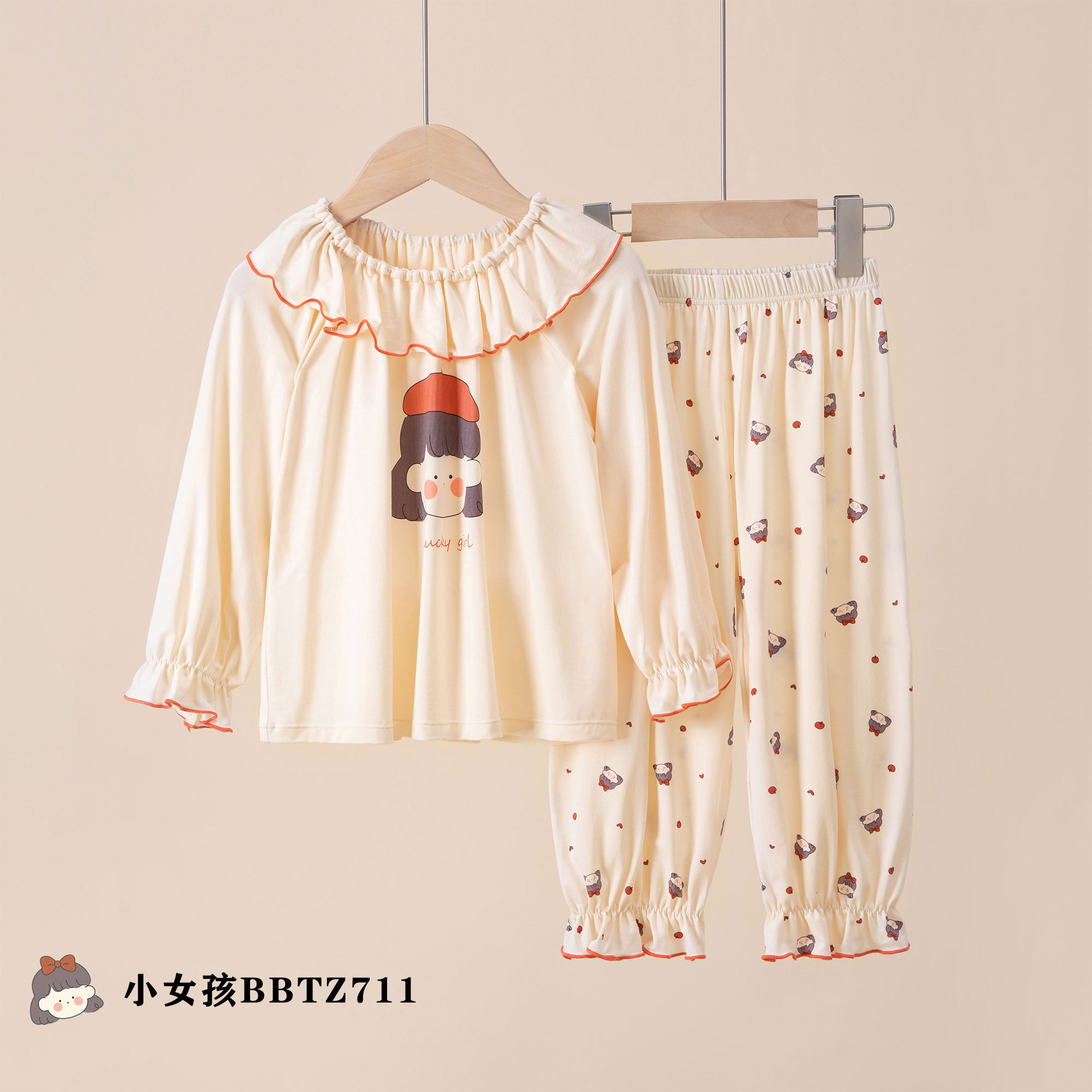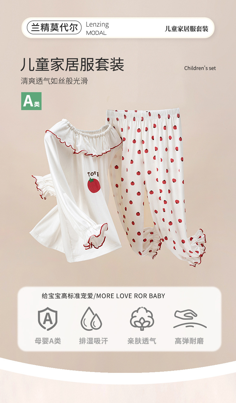 여름용 얇은 A급 렌징 모달 에어컨 의류, 중소형 아동용, 여아용, 연잎 칼라, 달콤하고 귀여운 잠옷 세트